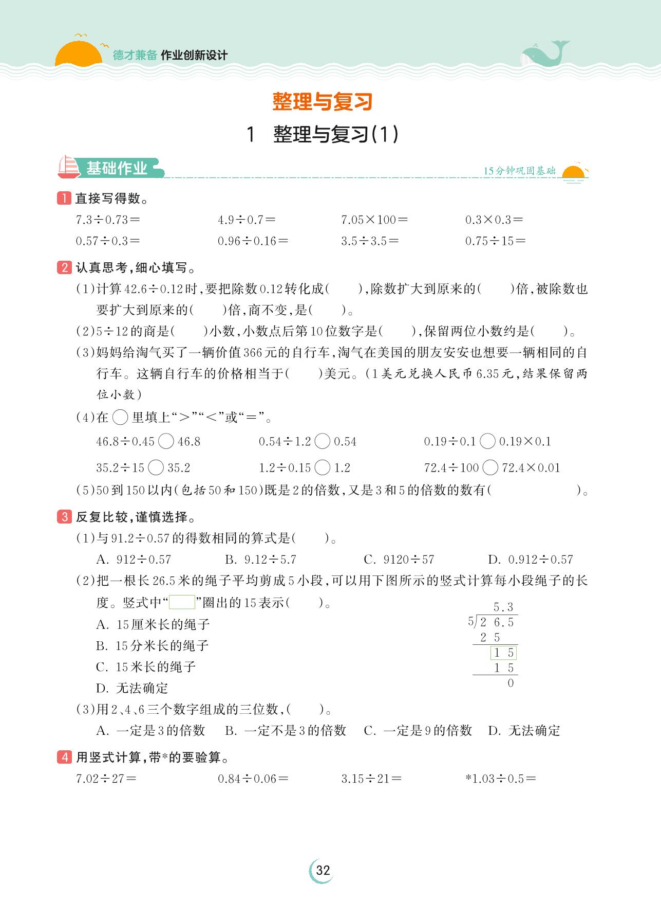 2023上册五年级数学北师版 整理与复习——1 整理与复习(1)