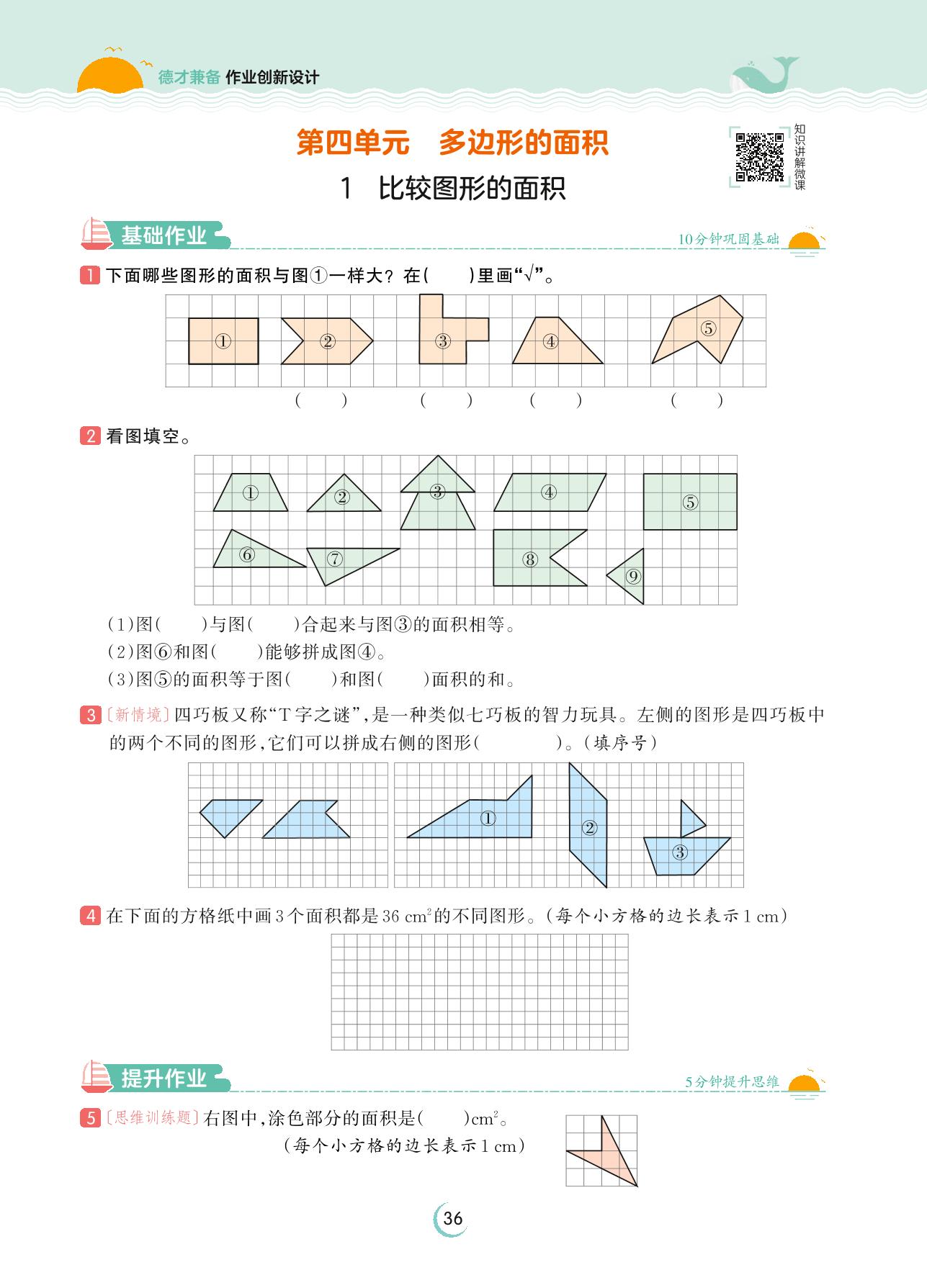 2023上册五年级数学北师版 第四单元 多边形的面积——1 比较图形的面积