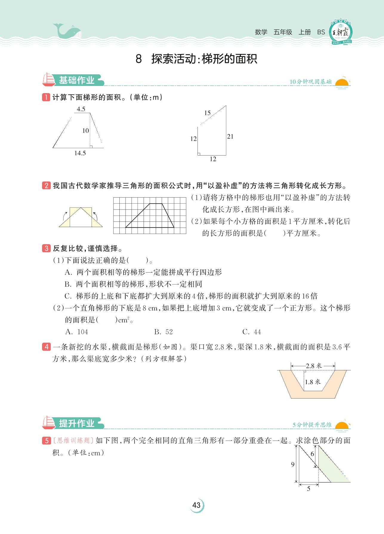 2023上册五年级数学北师版 第四单元 多边形的面积——8 探索活动:梯形的面积
