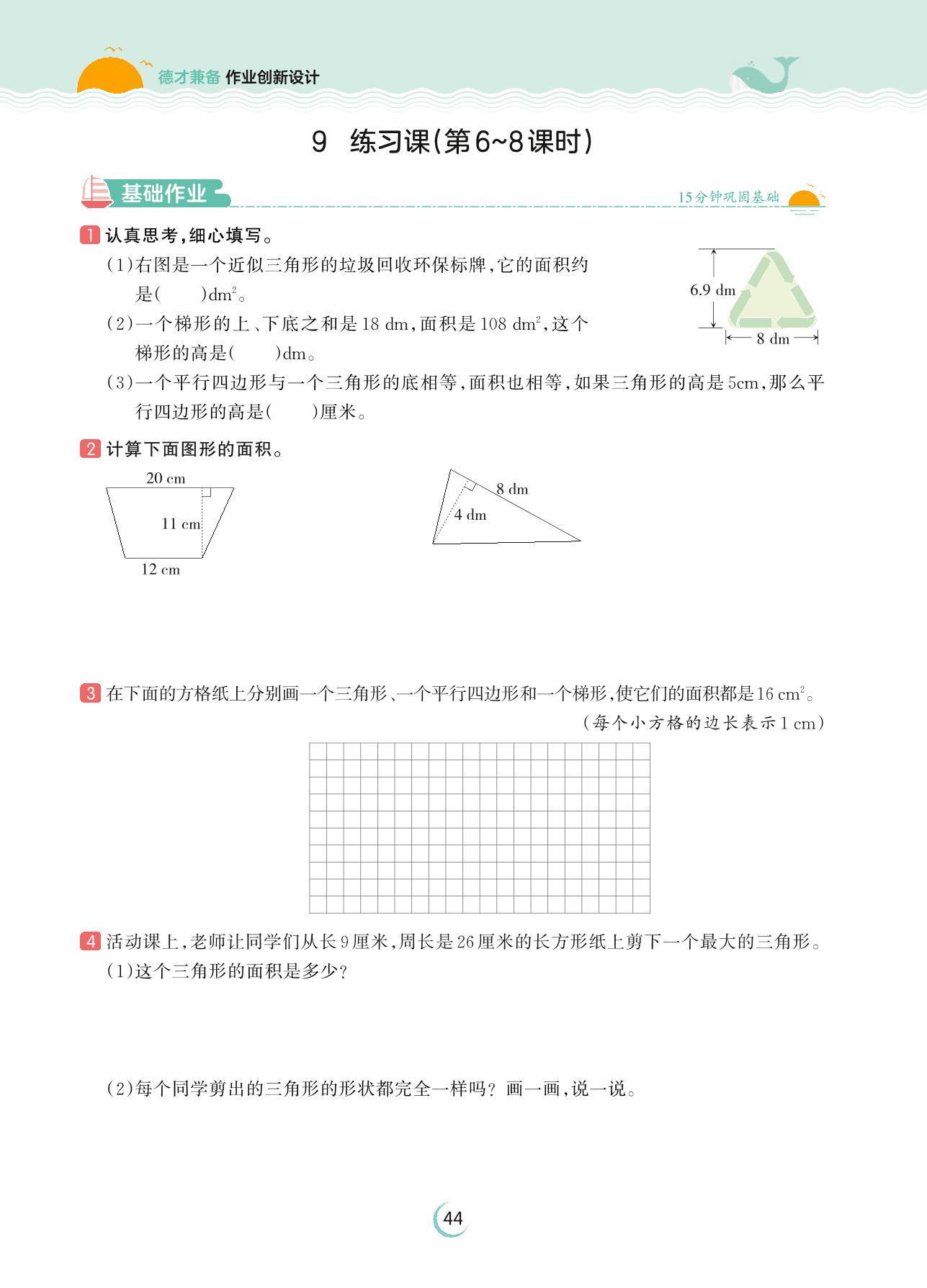 2023上册五年级数学北师版 第四单元 多边形的面积——9 练习课(第6~8课时)