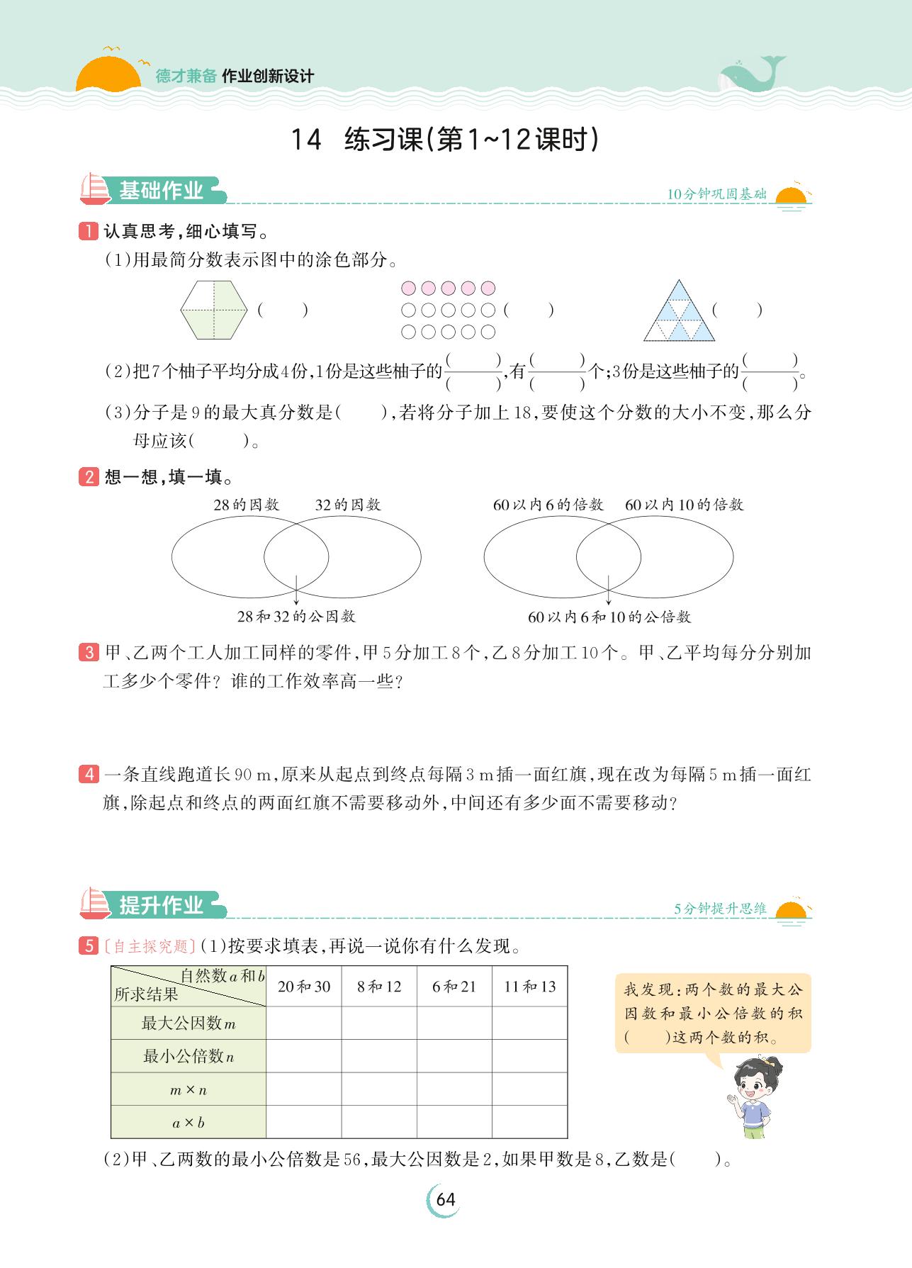 2023上册五年级数学北师版 第五单元 分数的意义——14 练习课(第1~12课时)