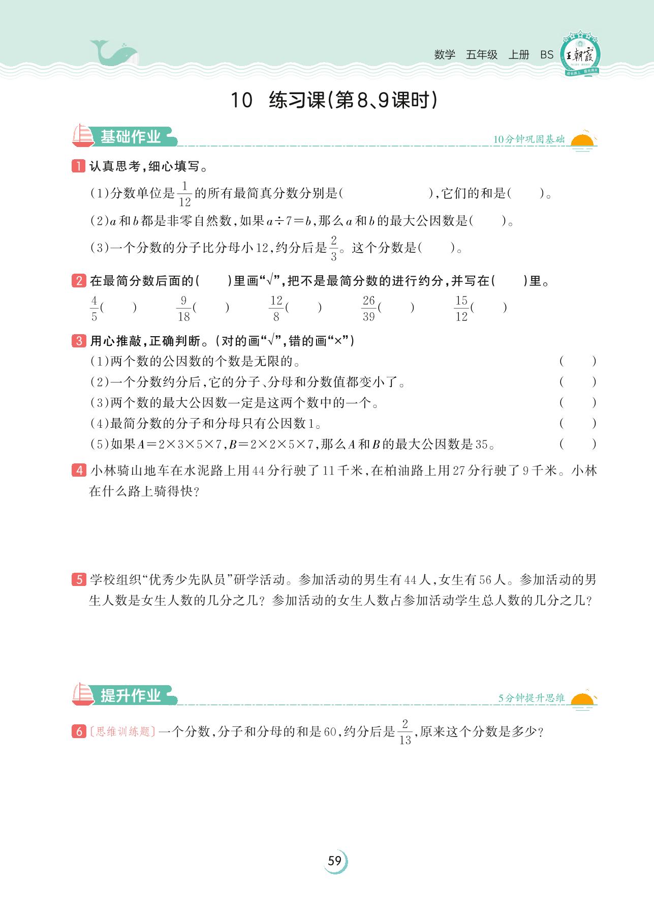 2023上册五年级数学北师版 第五单元 分数的意义——10 练习课(第8、9课时)