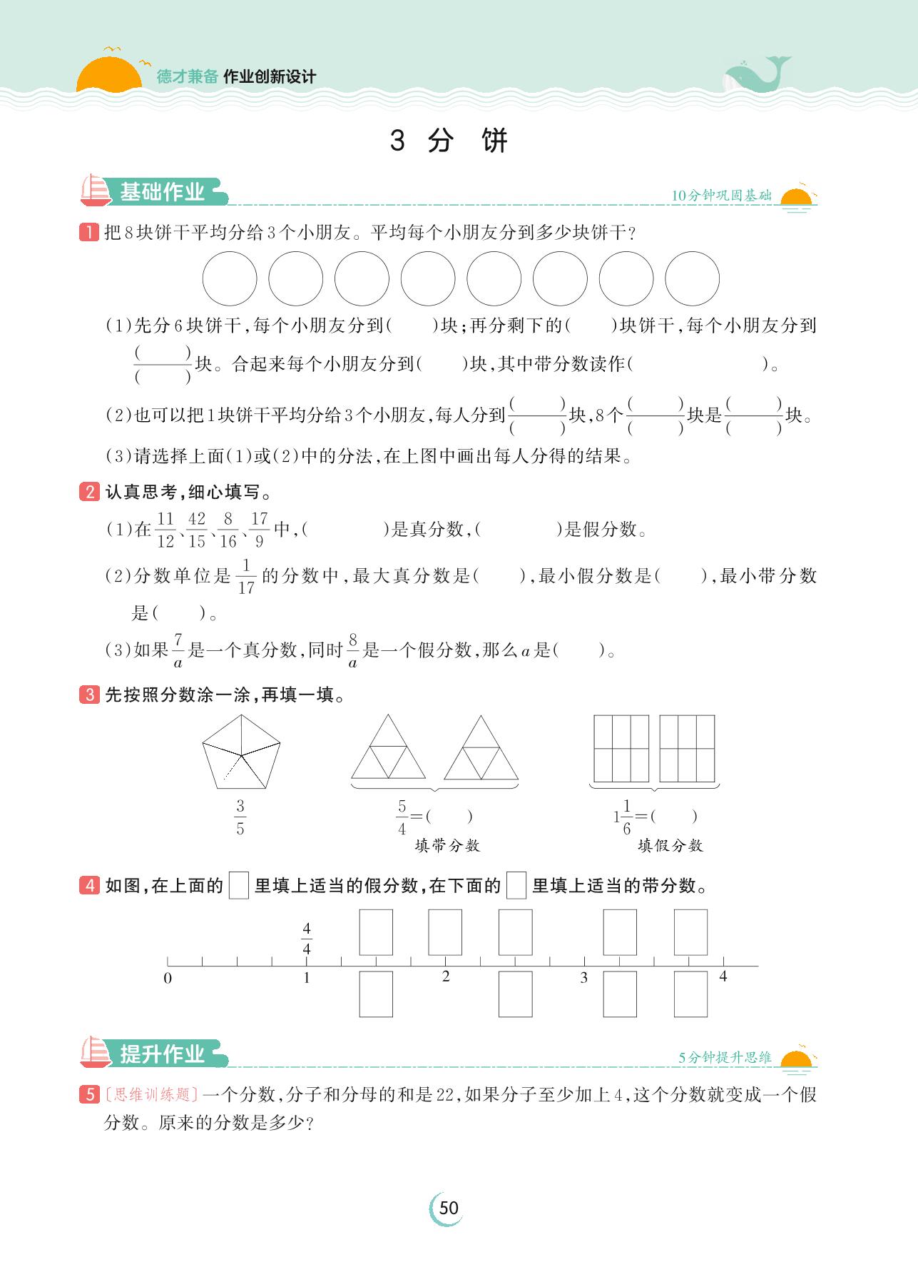 2023上册五年级数学北师版 第五单元 分数的意义——3 分饼