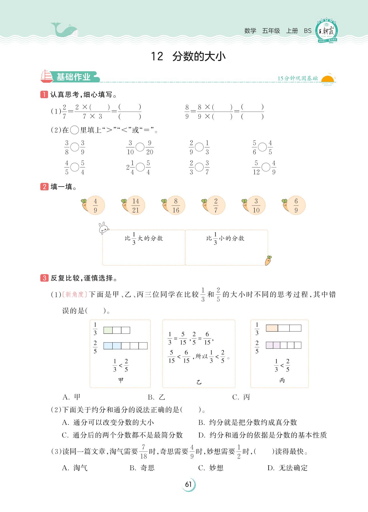 2023上册五年级数学北师版 第五单元 分数的意义——12 分数的大小