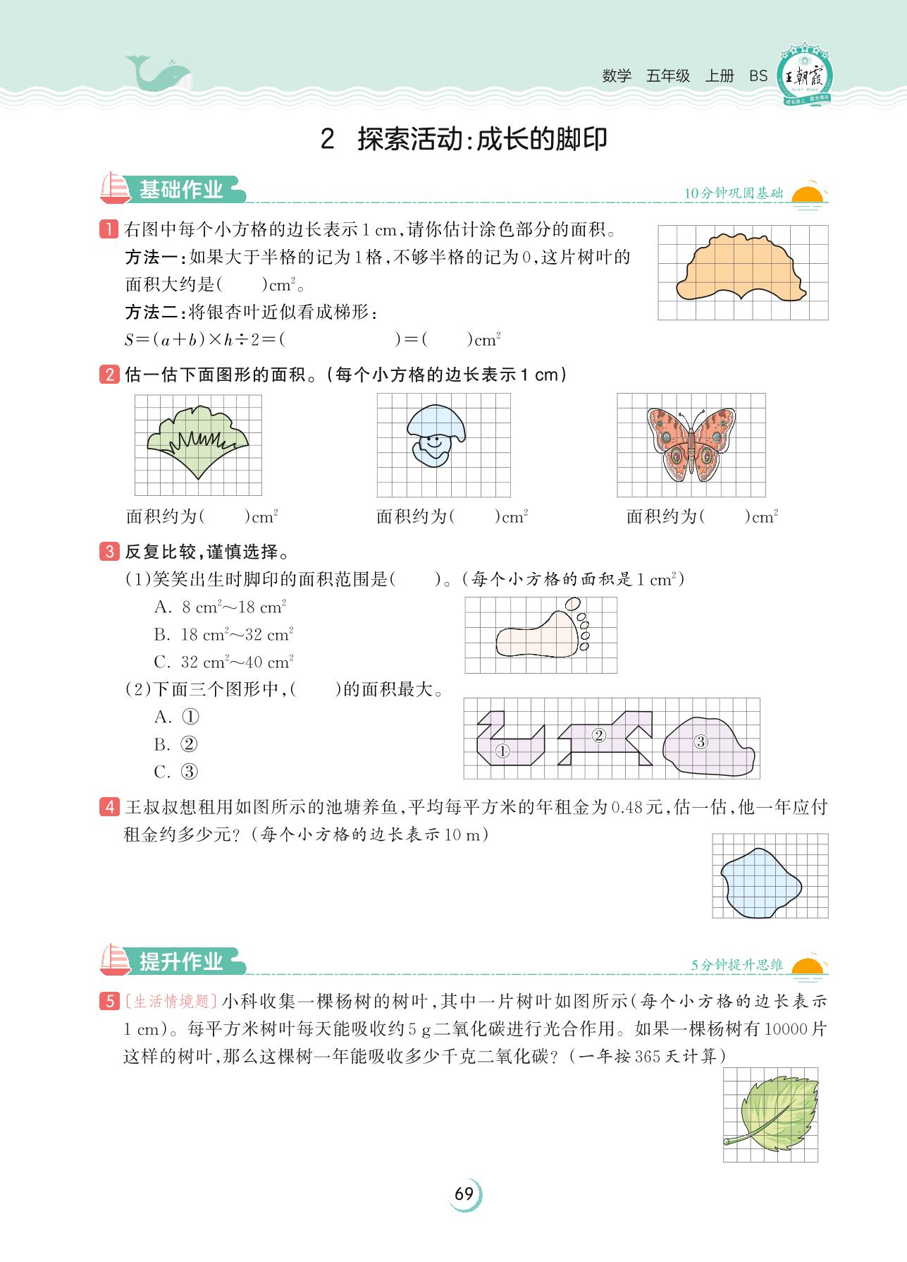 2023上册五年级数学北师版 第六单元 组合图形的面积——2 探索活动:成长的脚印