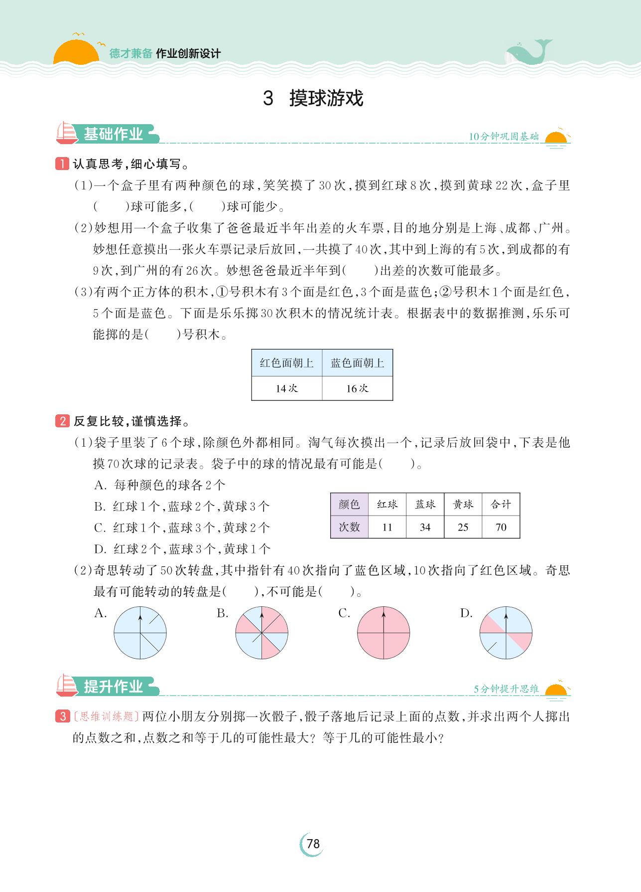 2023上册五年级数学北师版 第七单元 可能性——3 摸球游戏