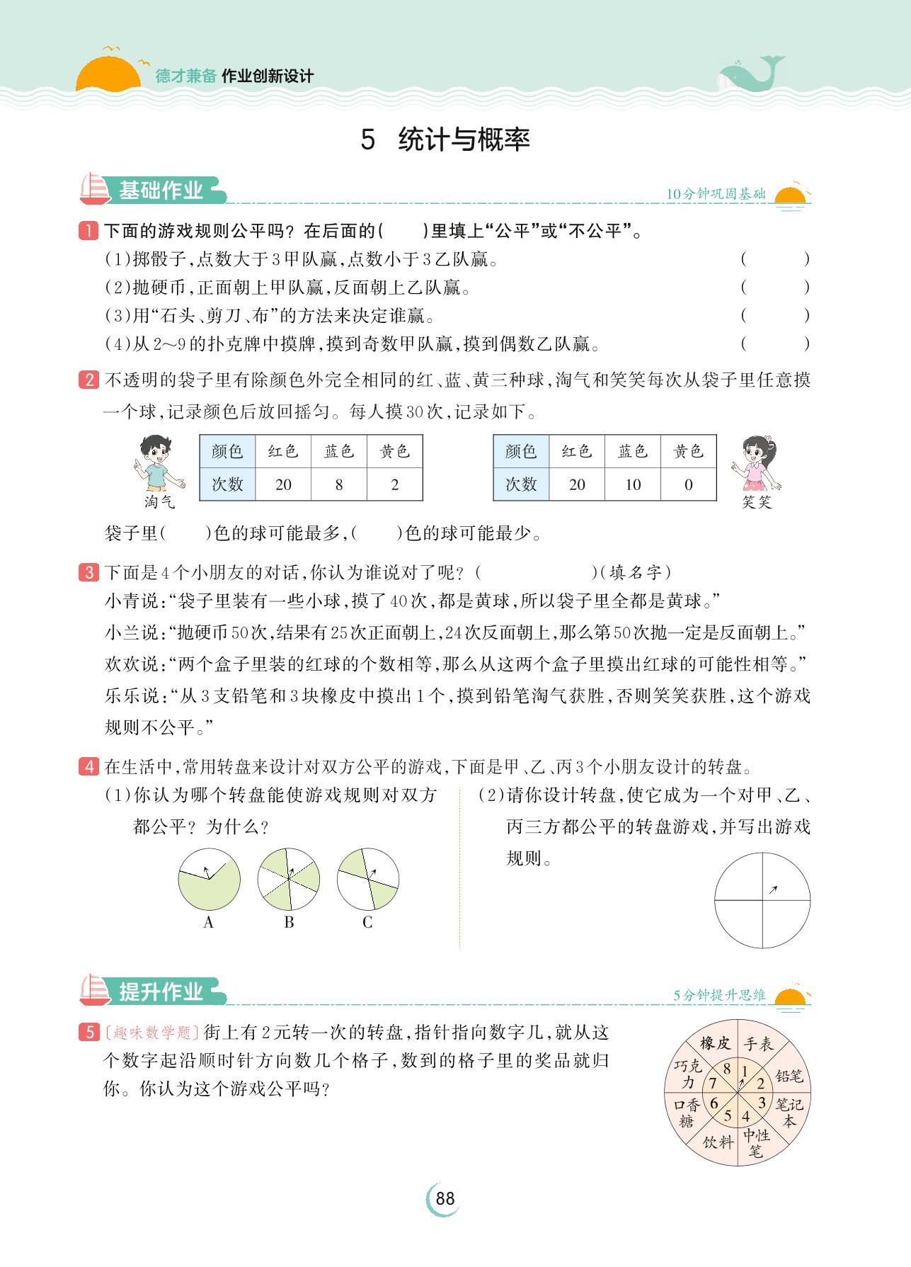 2023上册五年级数学北师版 总复习——5 统计与概率