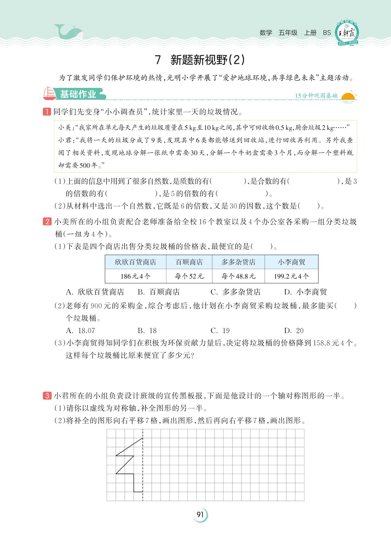 2023上册五年级数学北师版 总复习——7 新题新视野(2)