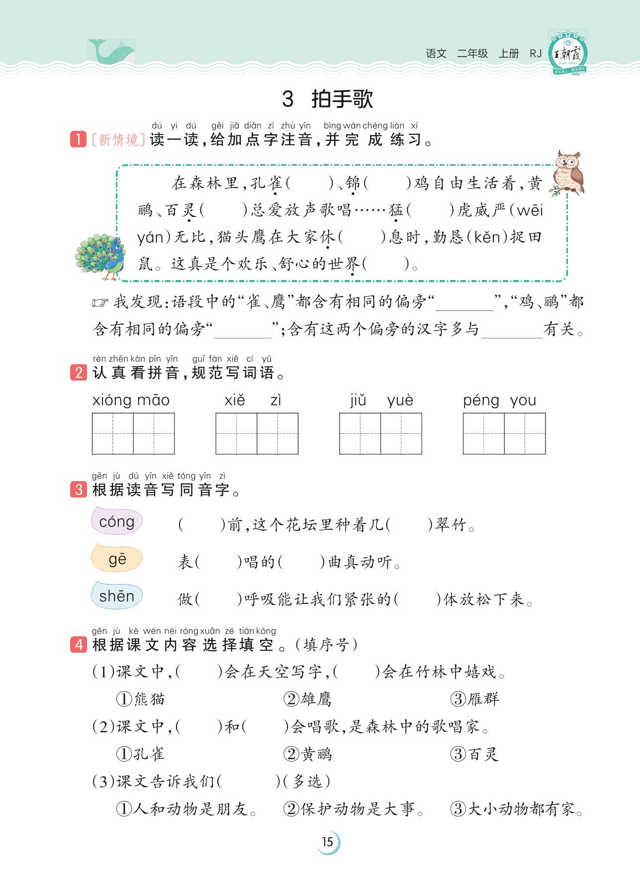 2023上册二年级语文人教版 第二单元 识字——3 拍手歌
