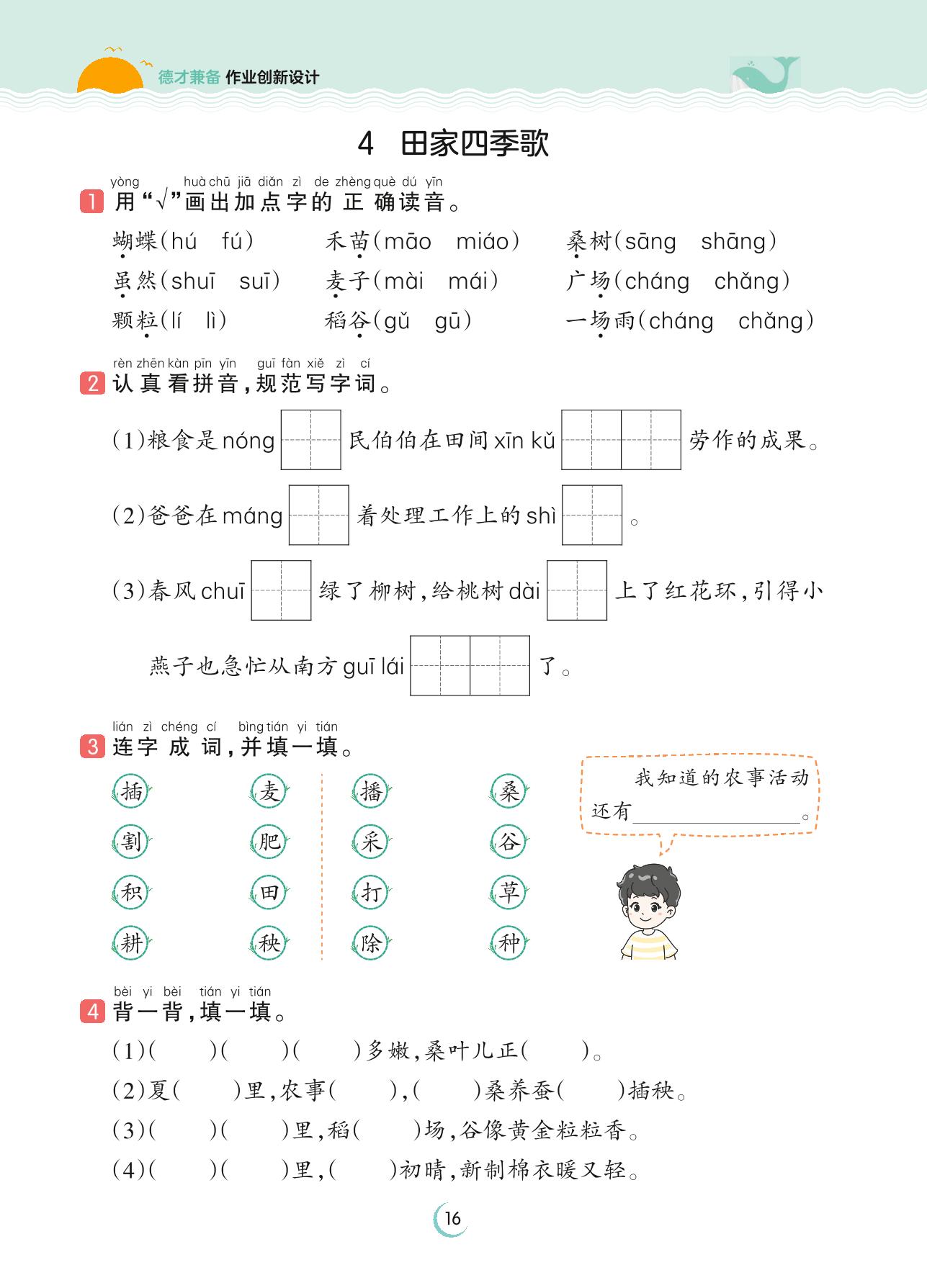 2023上册二年级语文人教版 第二单元 识字——4 田家四季歌