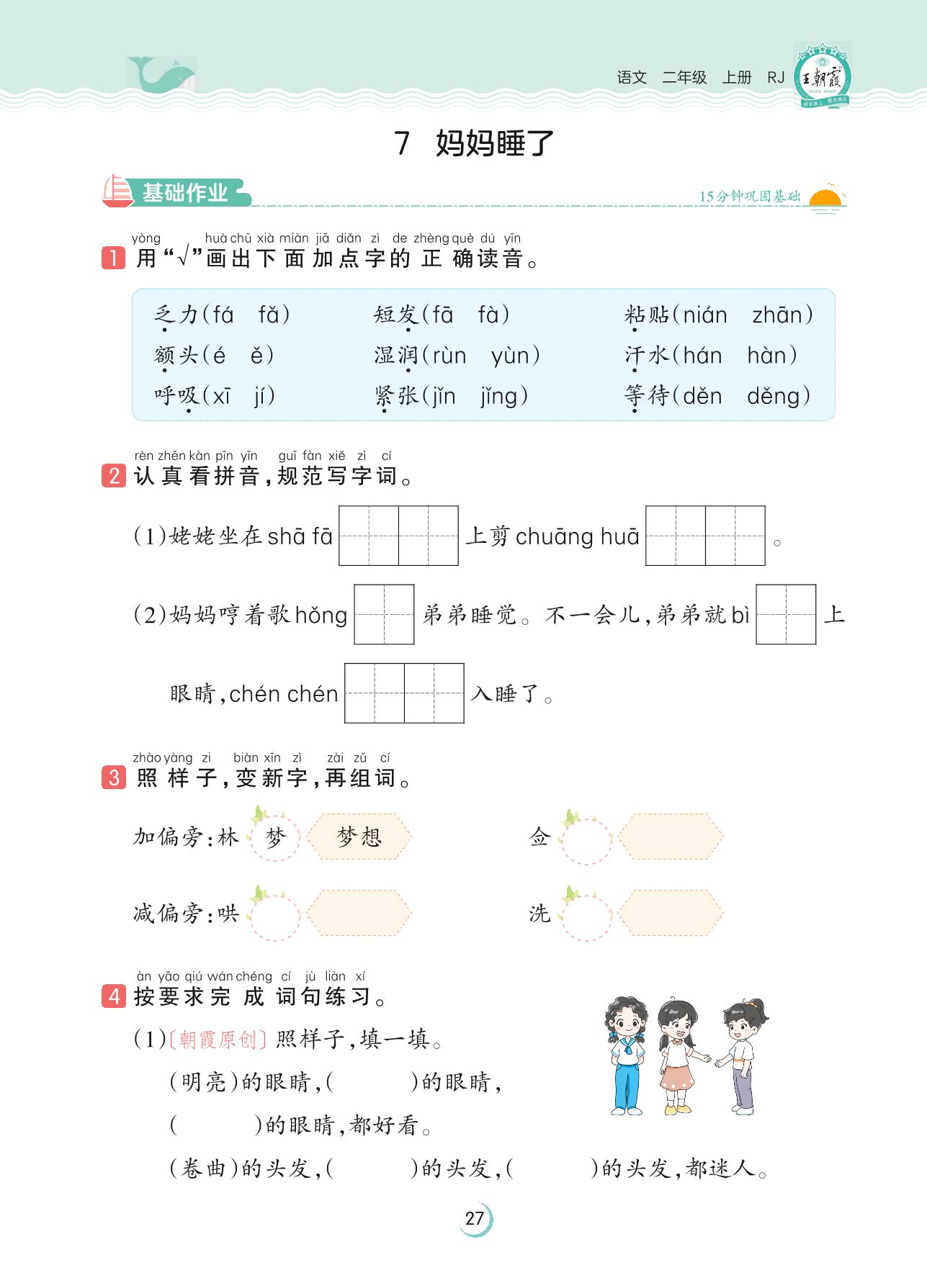 2023上册二年级语文人教版 第三单元 儿童生活——7 妈妈睡了