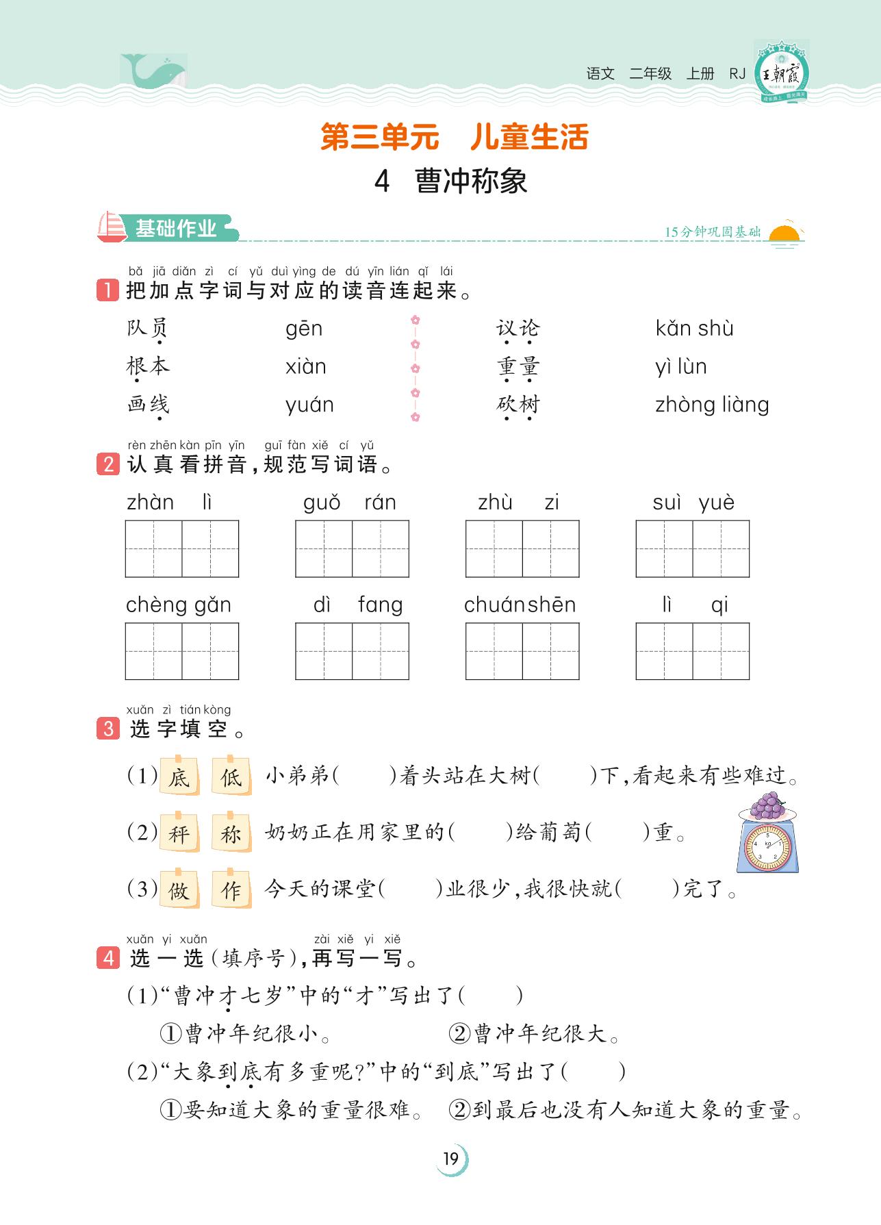 2023上册二年级语文人教版 第三单元 儿童生活——4 曹冲称象