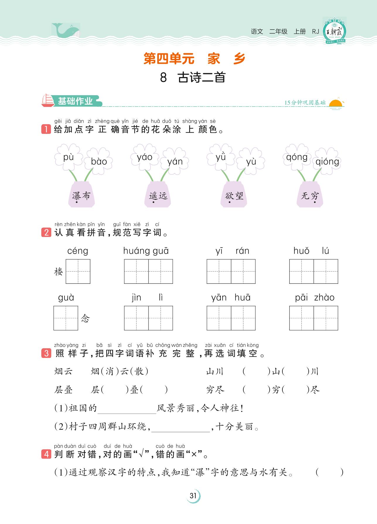 2023上册二年级语文人教版 第四单元 家乡——8 古诗二首