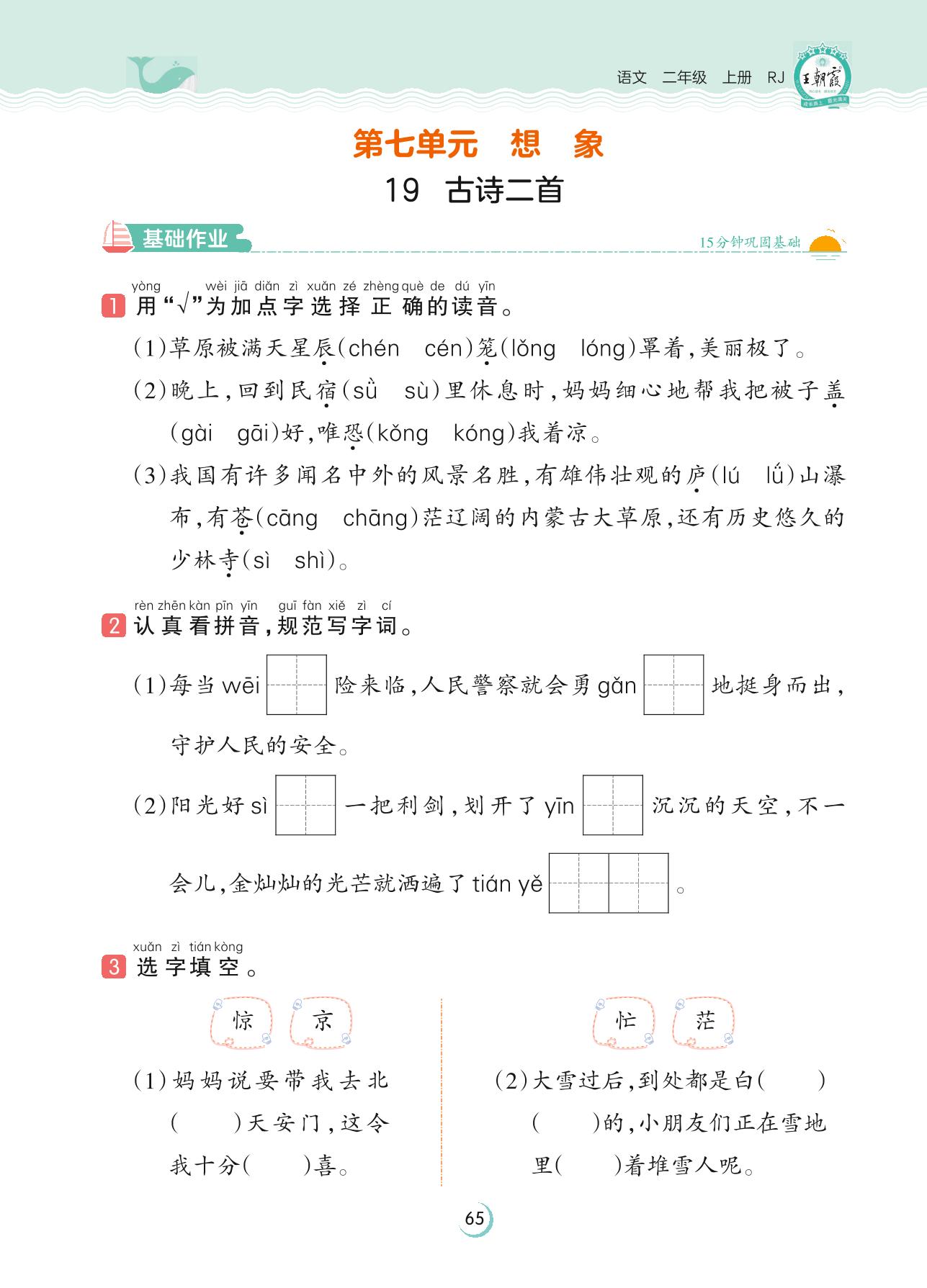 2023上册二年级语文人教版 第七单元 想象——19 古诗二首