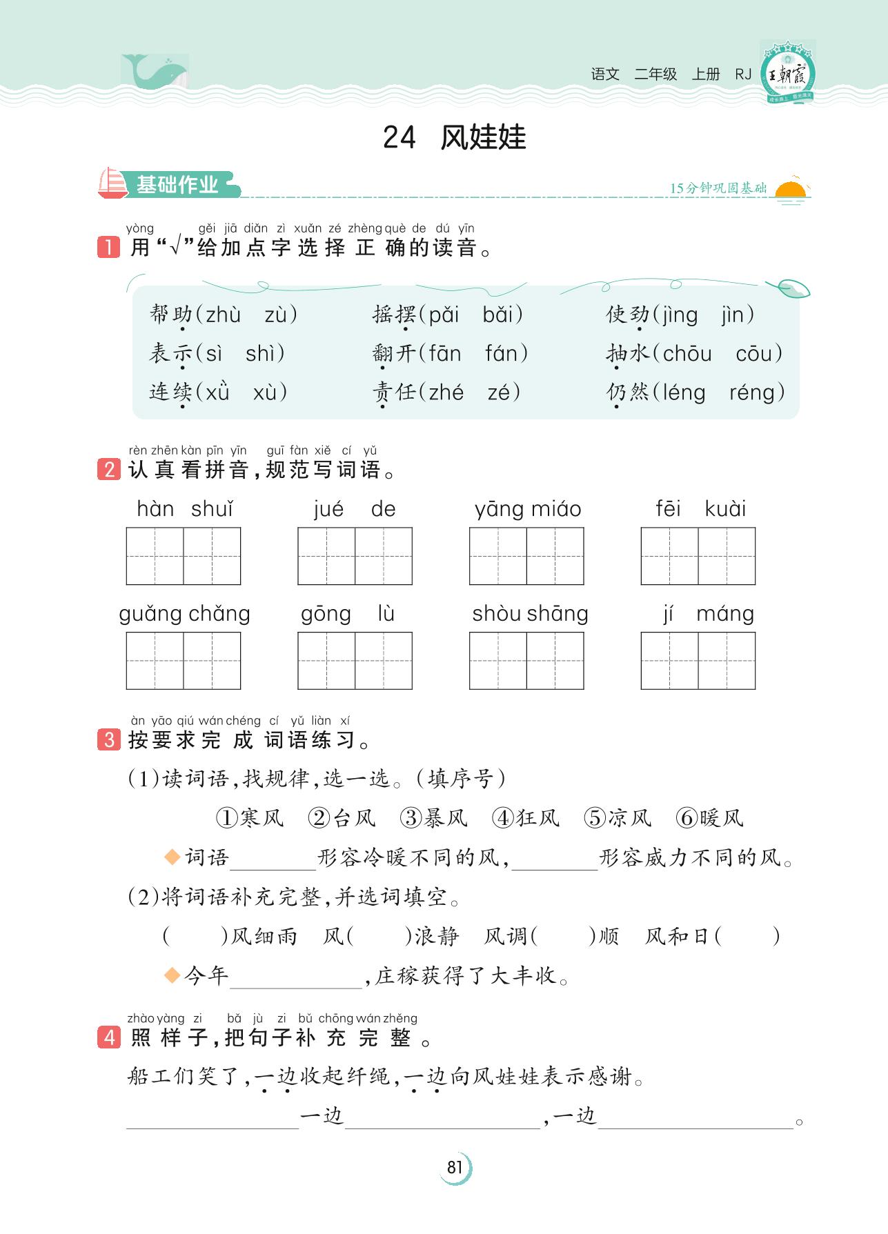 2023上册二年级语文人教版 第八单元 相处——24 风娃娃