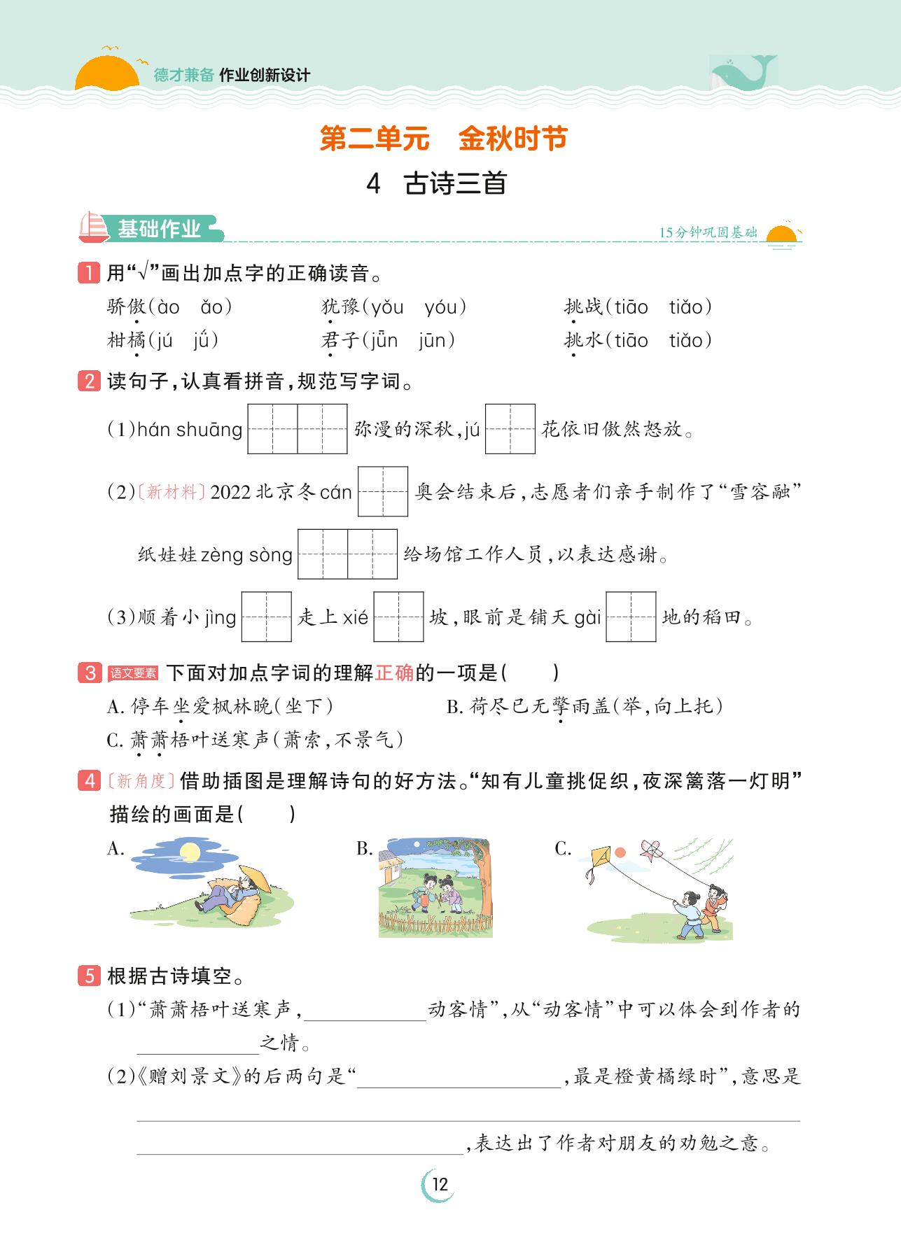 2023上册三年级语文人教版 第二单元 金秋时节——4 古诗三首