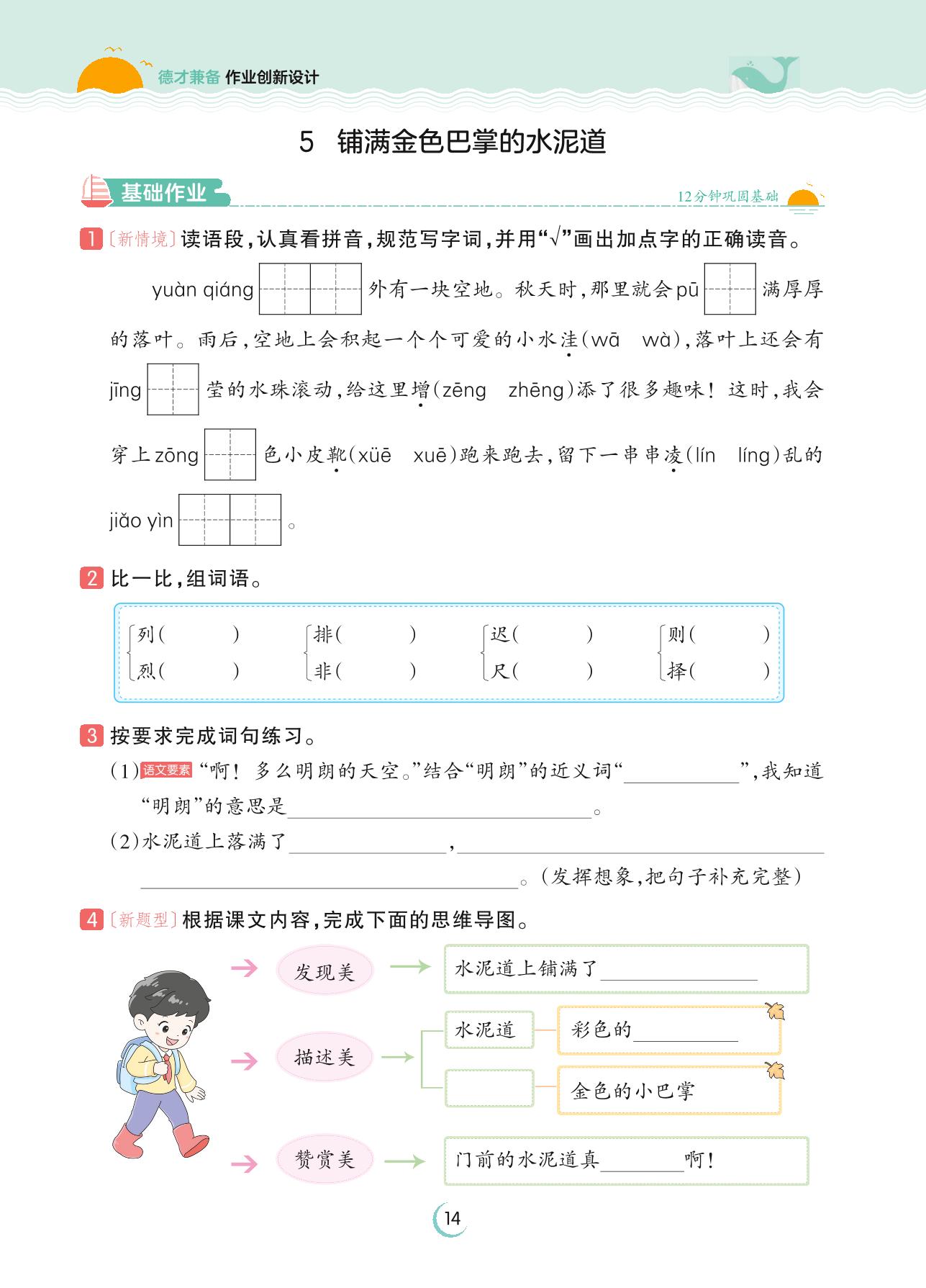 2023上册三年级语文人教版 第二单元 金秋时节——5 铺满金色巴掌的水泥道