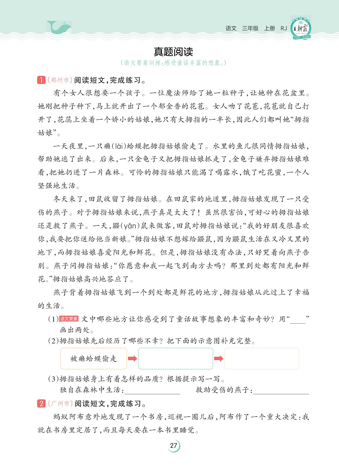 2023上册三年级语文人教版 第三单元 中外童话——真题阅读(语文要素训练)