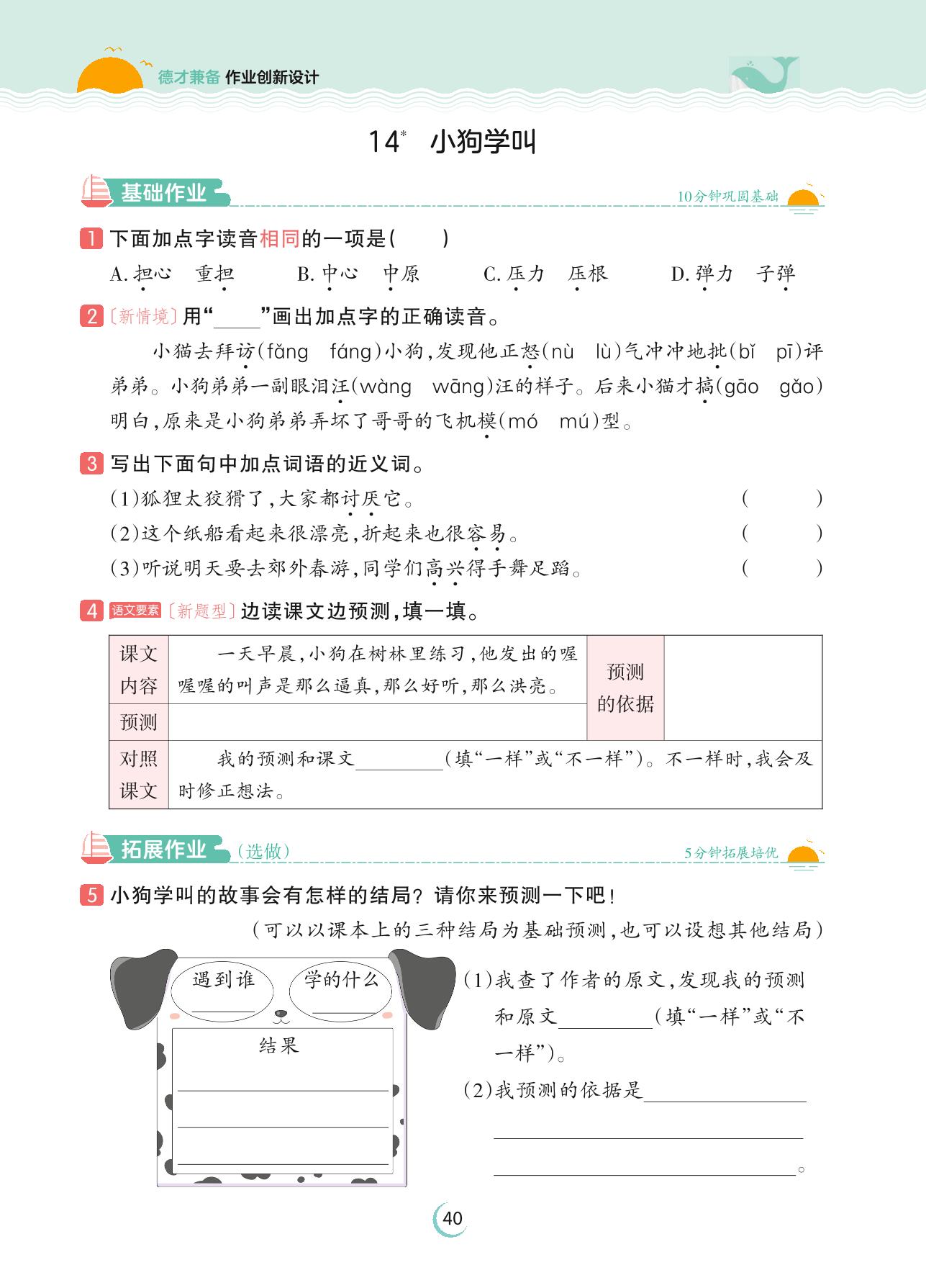 2023上册三年级语文人教版 第四单元 阅读策略 预测——14 小狗学叫