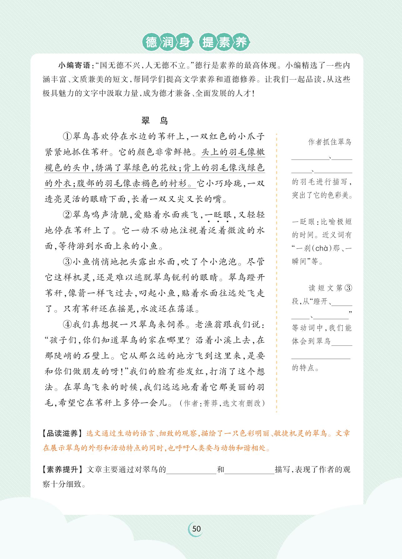2023上册三年级语文人教版 第五单元 留心观察——德润身 提素养(学科素养落地)