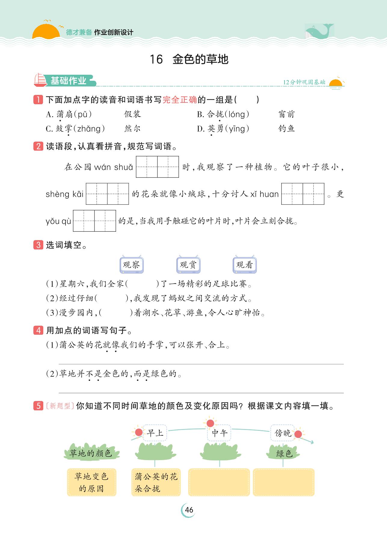 2023上册三年级语文人教版 第五单元 留心观察——16 金色的草地