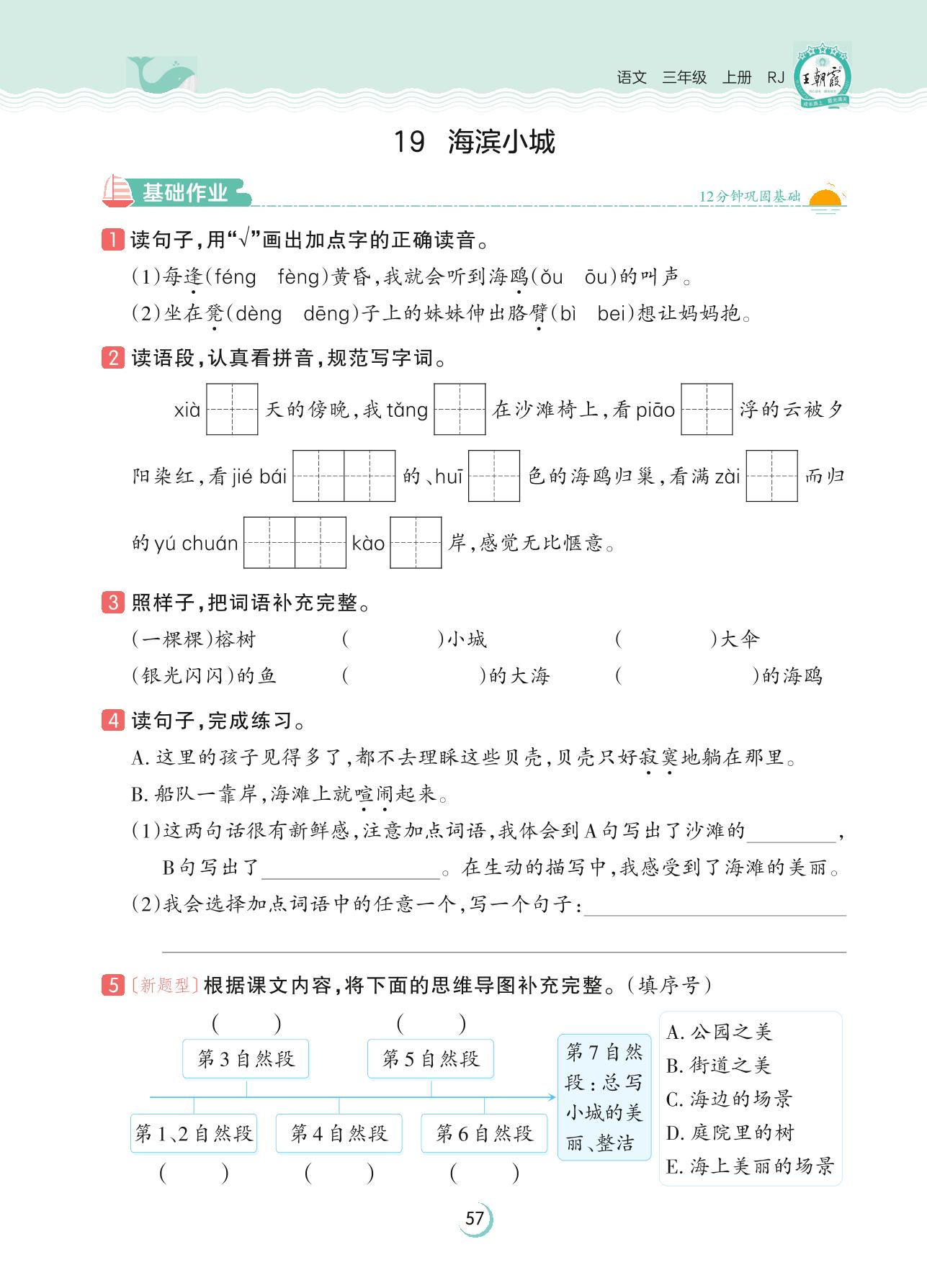 2023上册三年级语文人教版 第六单元 祖国河山——19 海滨小城