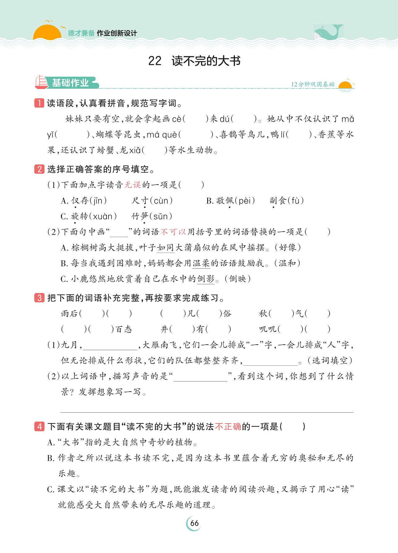 2023上册三年级语文人教版 第七单元 我与自然——22 读不完的大书