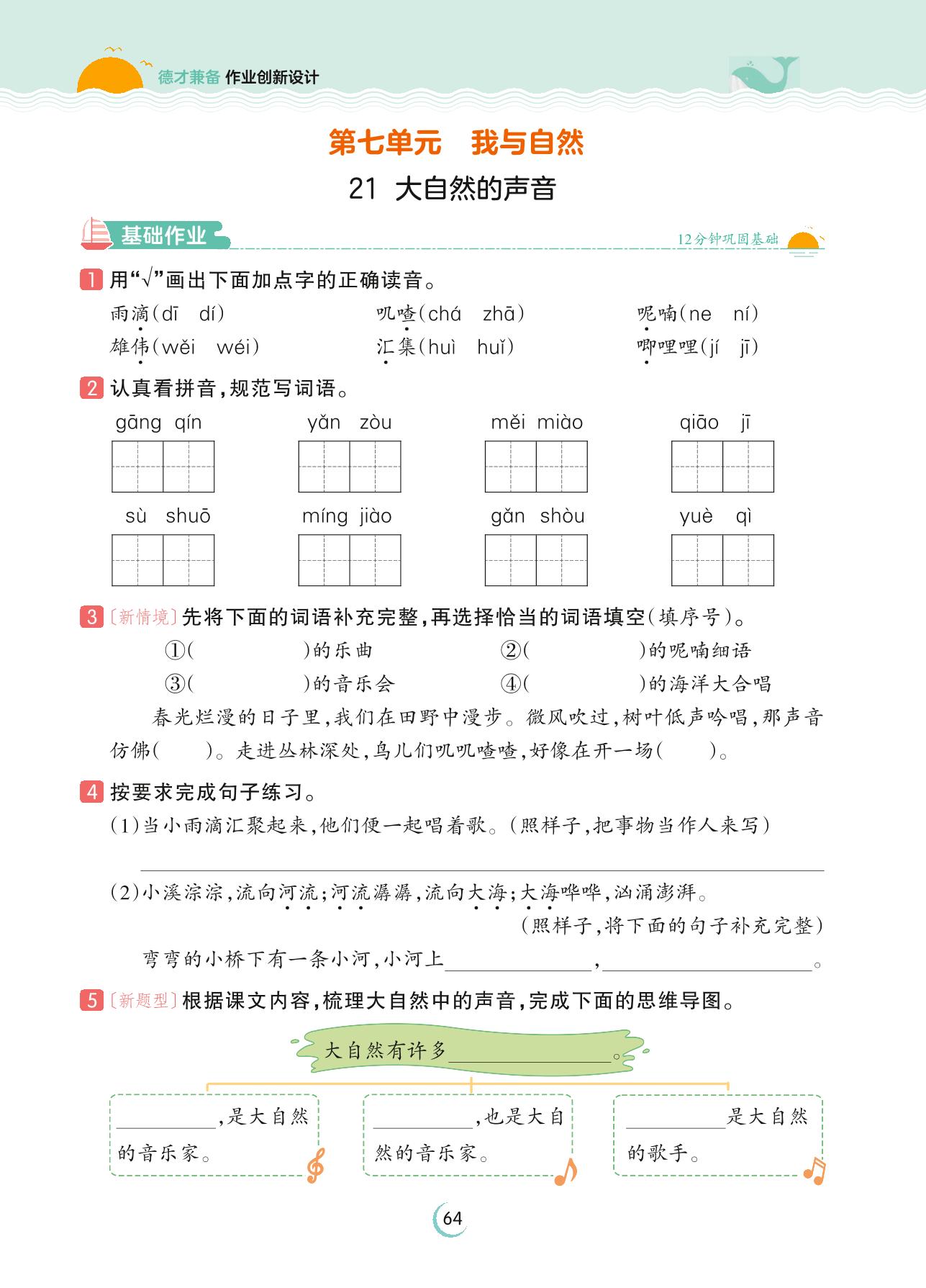 2023上册三年级语文人教版 第七单元 我与自然——21 大自然的声音