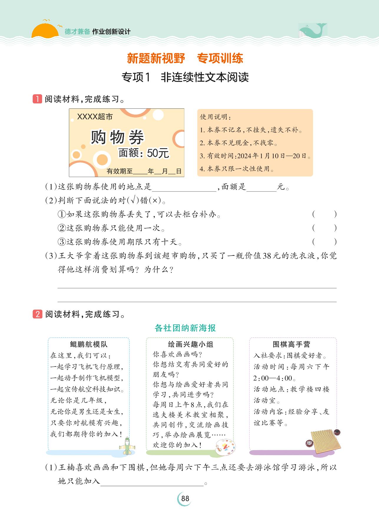 2023上册三年级语文人教版 新题新视野 专项训练——专项1 非连续性文本阅读