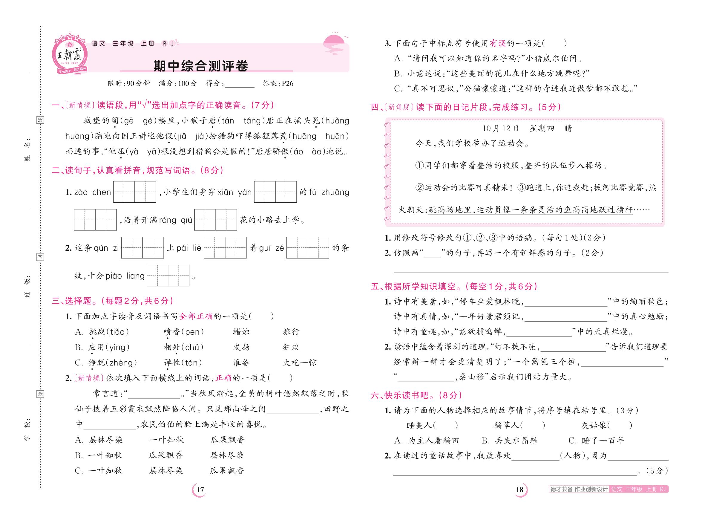 三年级语文人教版上册期中卷