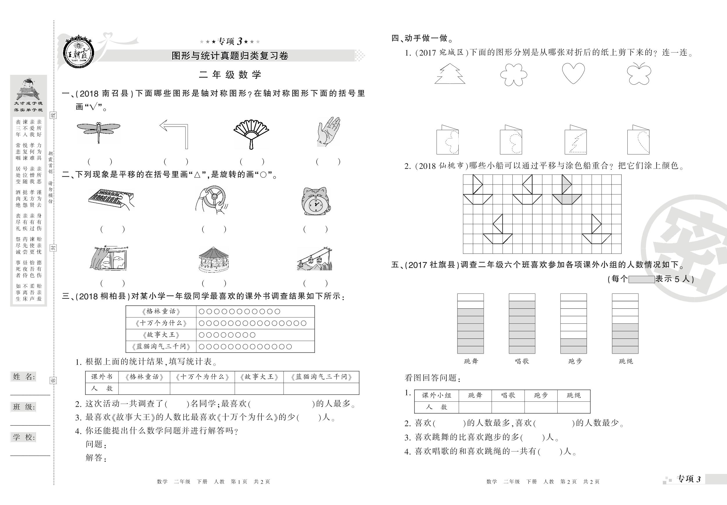 王朝霞期末专项卷——图形与统计、解决问题真题归类复习卷二年级下册数学(人教版)_R21080394015【0】