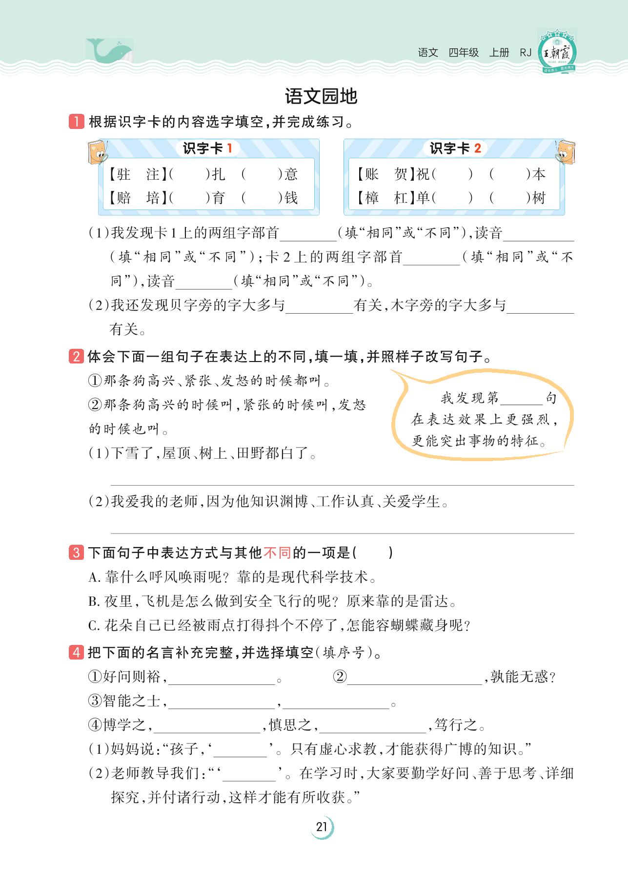 2023上册四年级语文人教版 第二单元 阅读策略 提问——语文园地