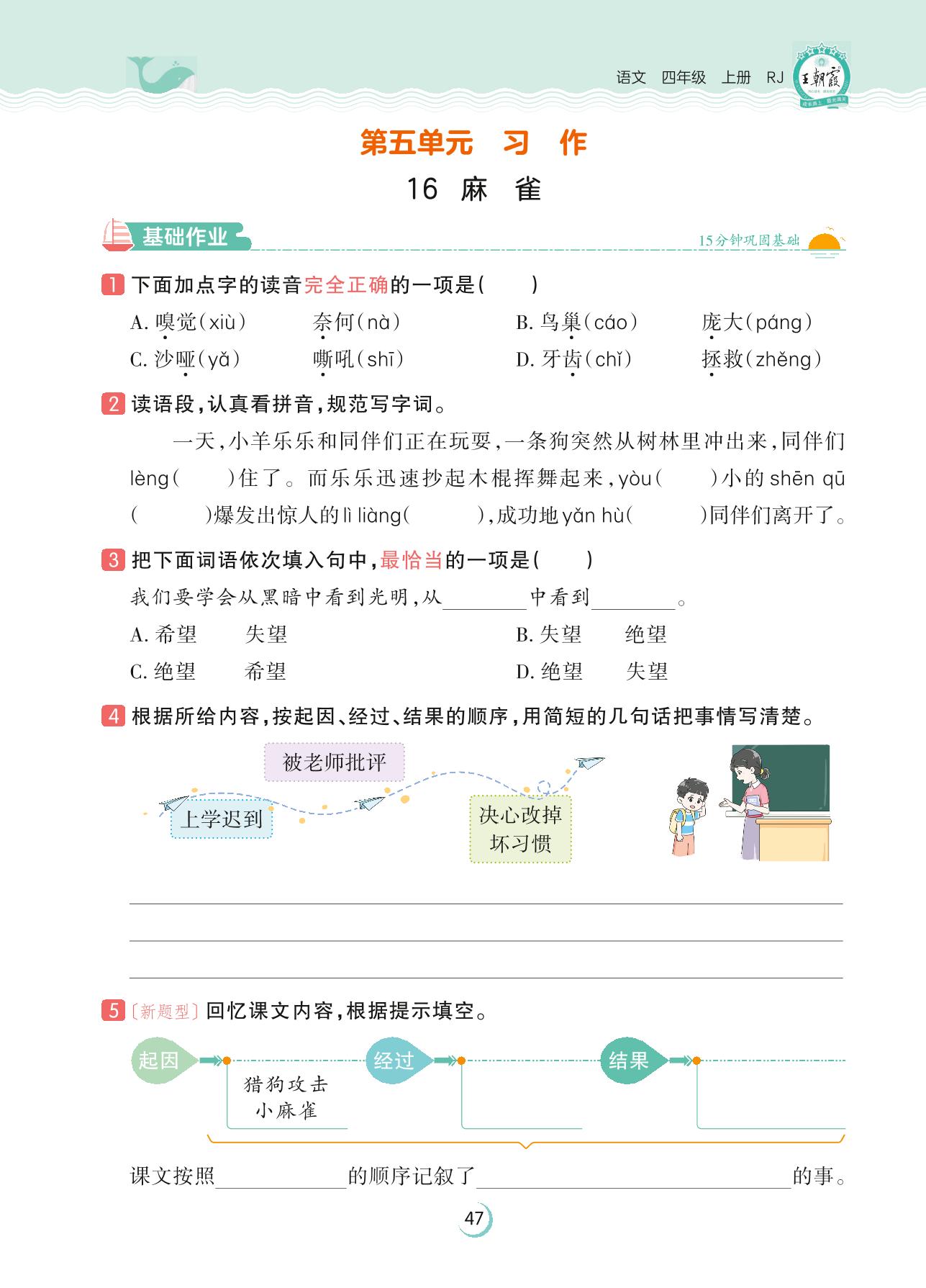 2023上册四年级语文人教版 第五单元 习作——16 麻雀