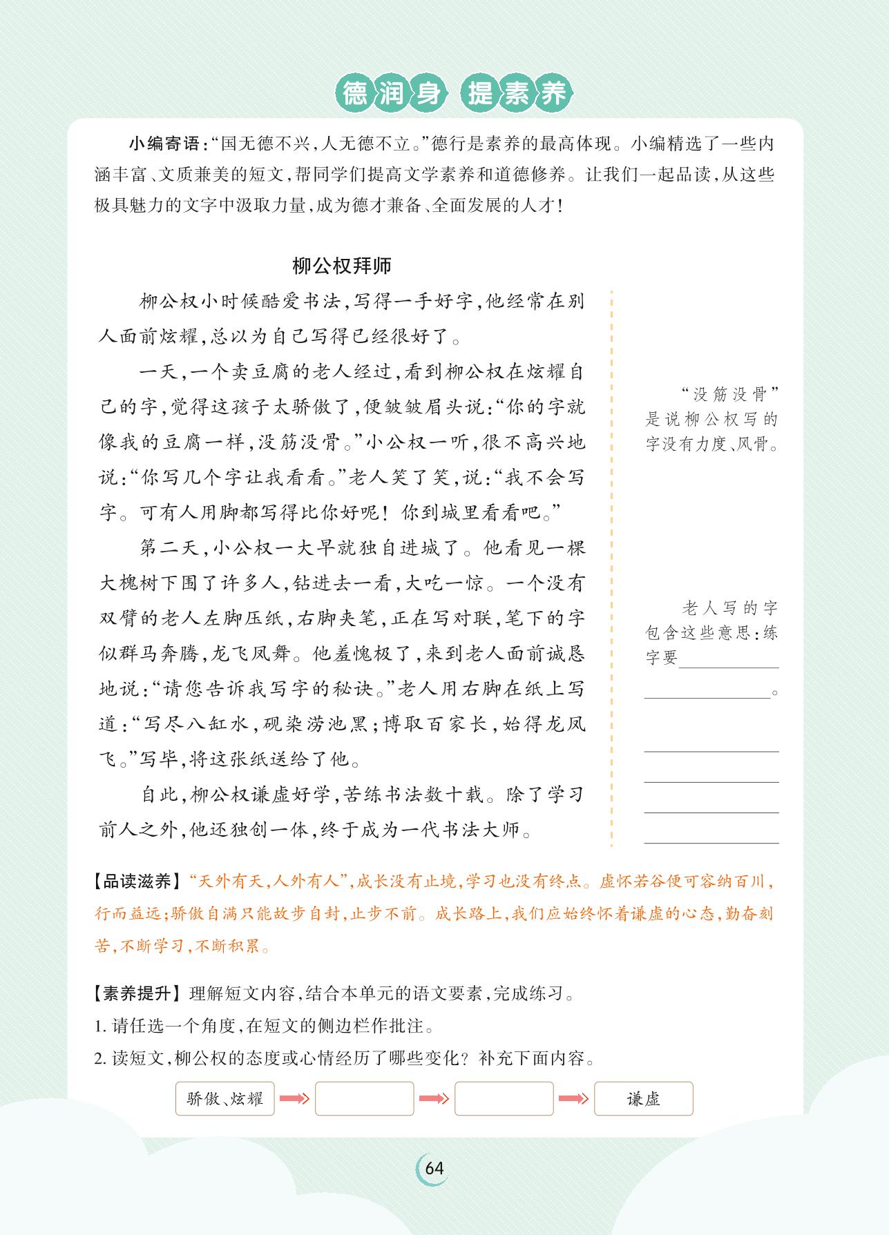 2023上册四年级语文人教版 第六单元 成长故事——德润身 提素养(学科素养落地)