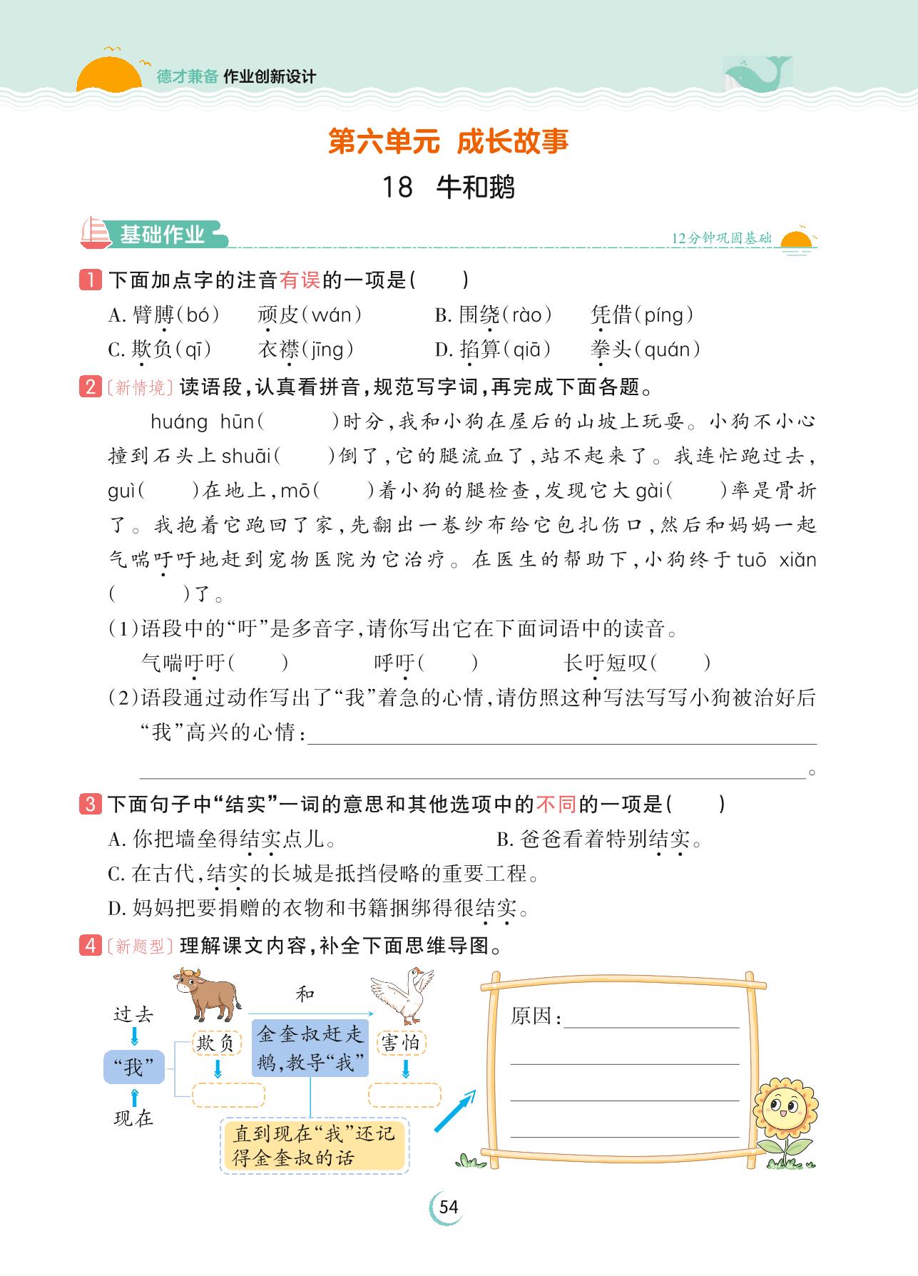 2023上册四年级语文人教版 第六单元 成长故事——18 牛和鹅