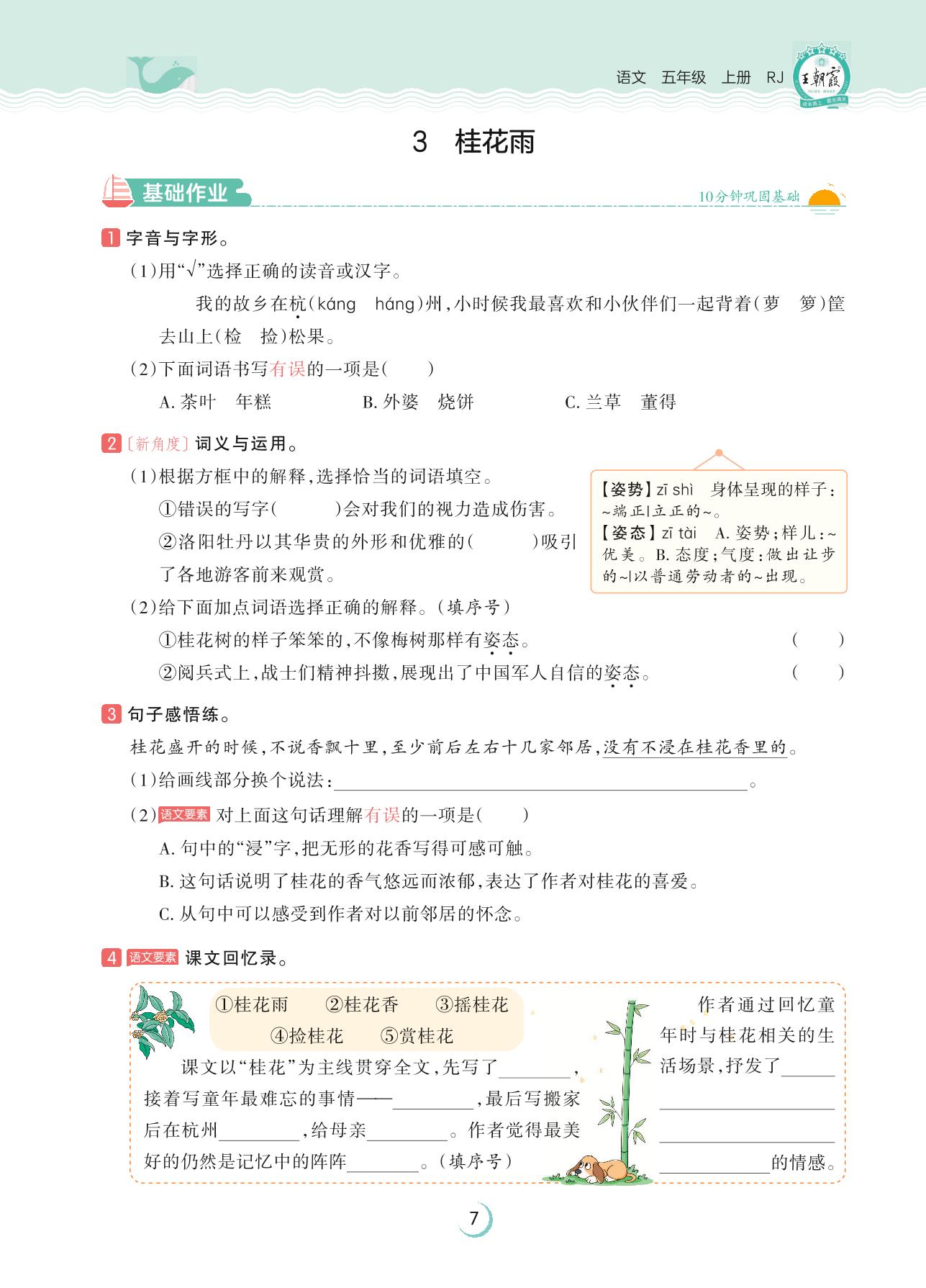 2023上册五年级语文人教版 第一单元 万物有灵——3 桂花雨
