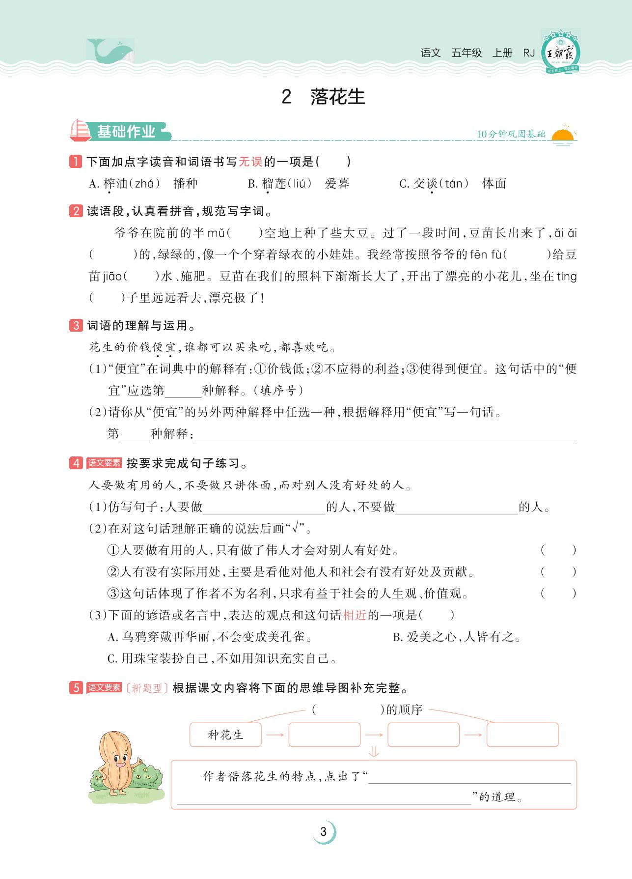 2023上册五年级语文人教版 第一单元 万物有灵——2 落花生
