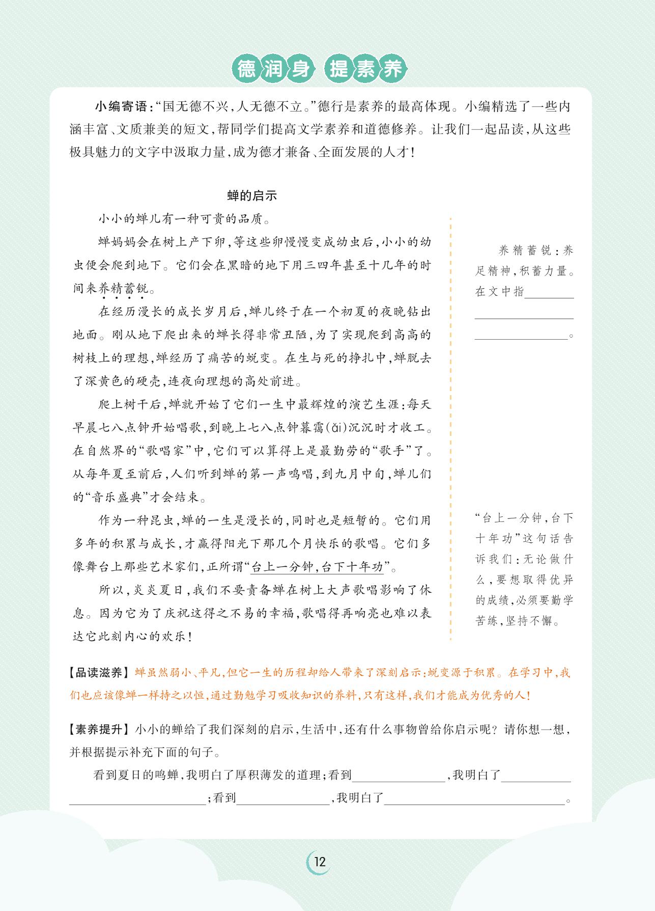 2023上册五年级语文人教版 第一单元 万物有灵——德润身 提素养(学科素养落地)
