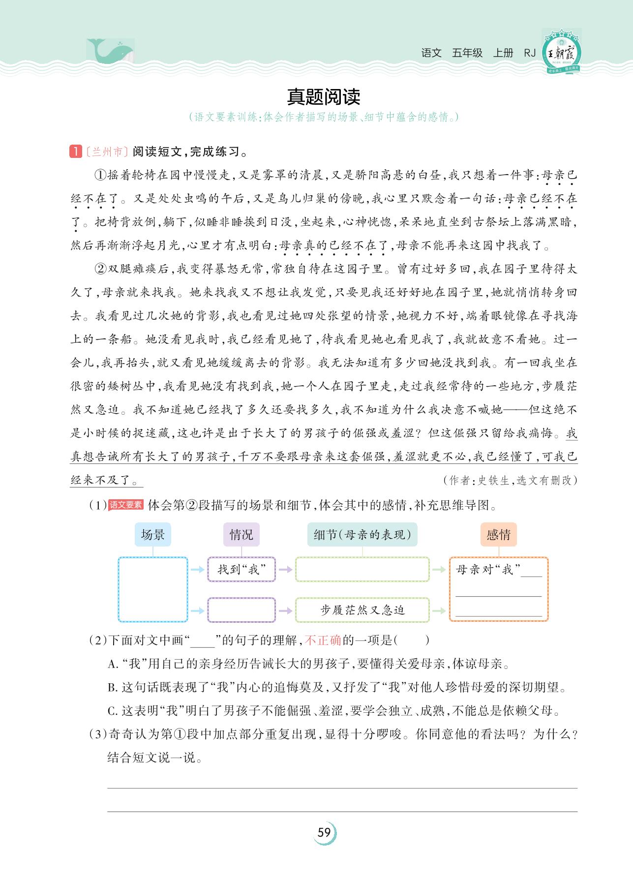 2023上册五年级语文人教版 第六单元 舐犊情深——真题阅读(语文要素训练)