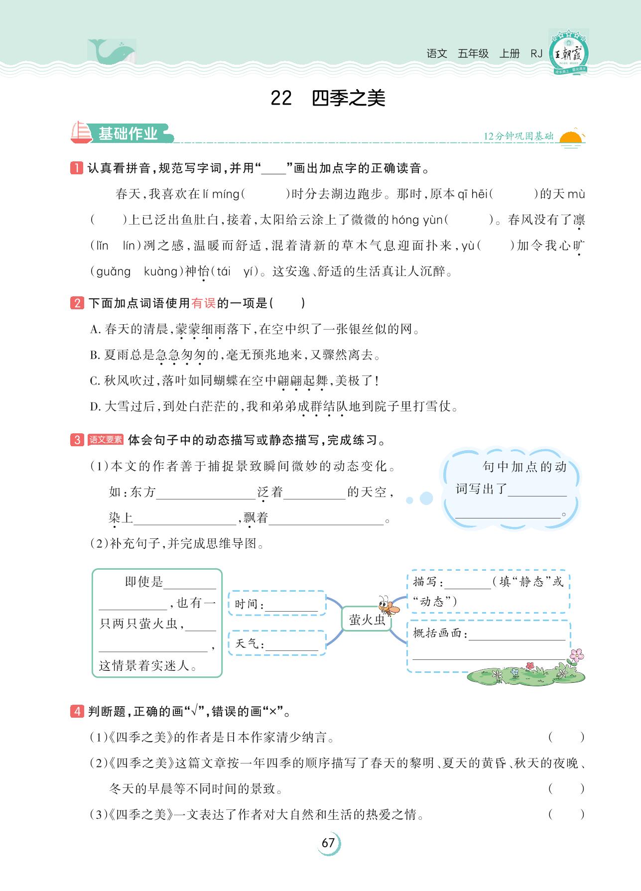 2023上册五年级语文人教版 第七单元 自然之趣——22 四季之美