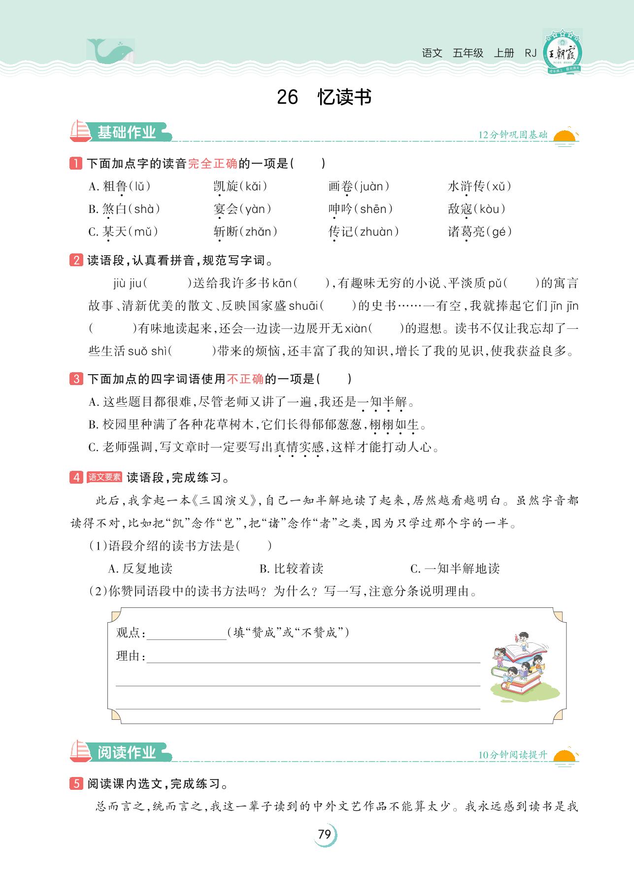 2023上册五年级语文人教版 第八单元 读书明智——26 忆读书