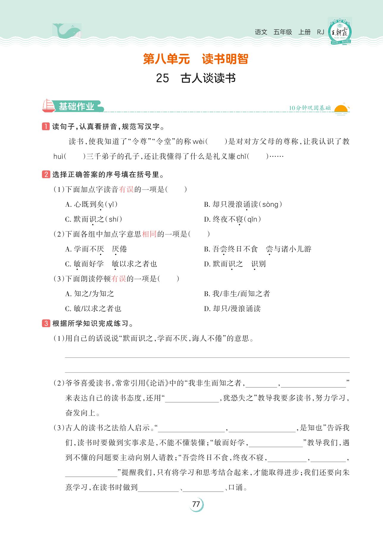 2023上册五年级语文人教版 第八单元 读书明智——25 古人谈读书