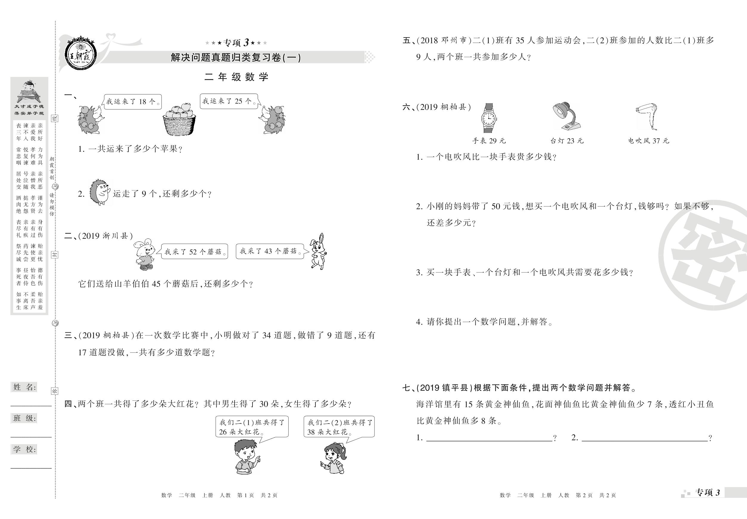 王朝霞期末专项卷——解决问题真题归类复习二年级上册数学(人教版)_R21080394101【0】