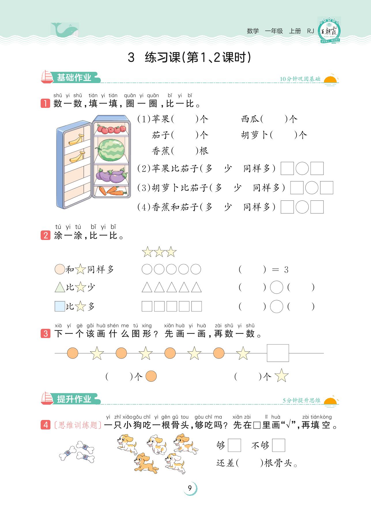 2023上册一年级数学人教版 第三单元 5以内数的认识和加减法——3 练习课(第1、2课时)