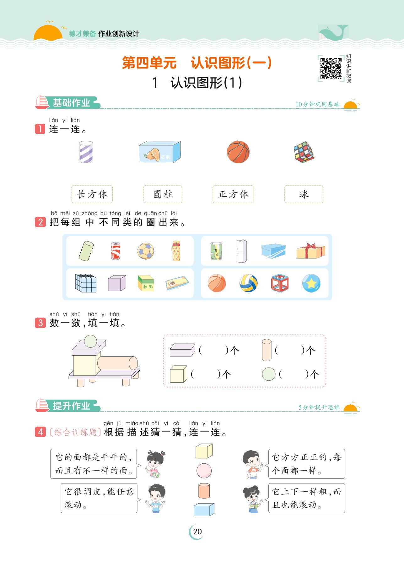 2023上册一年级数学人教版 第四单元 认识图形(一)——1 认识图形(1)