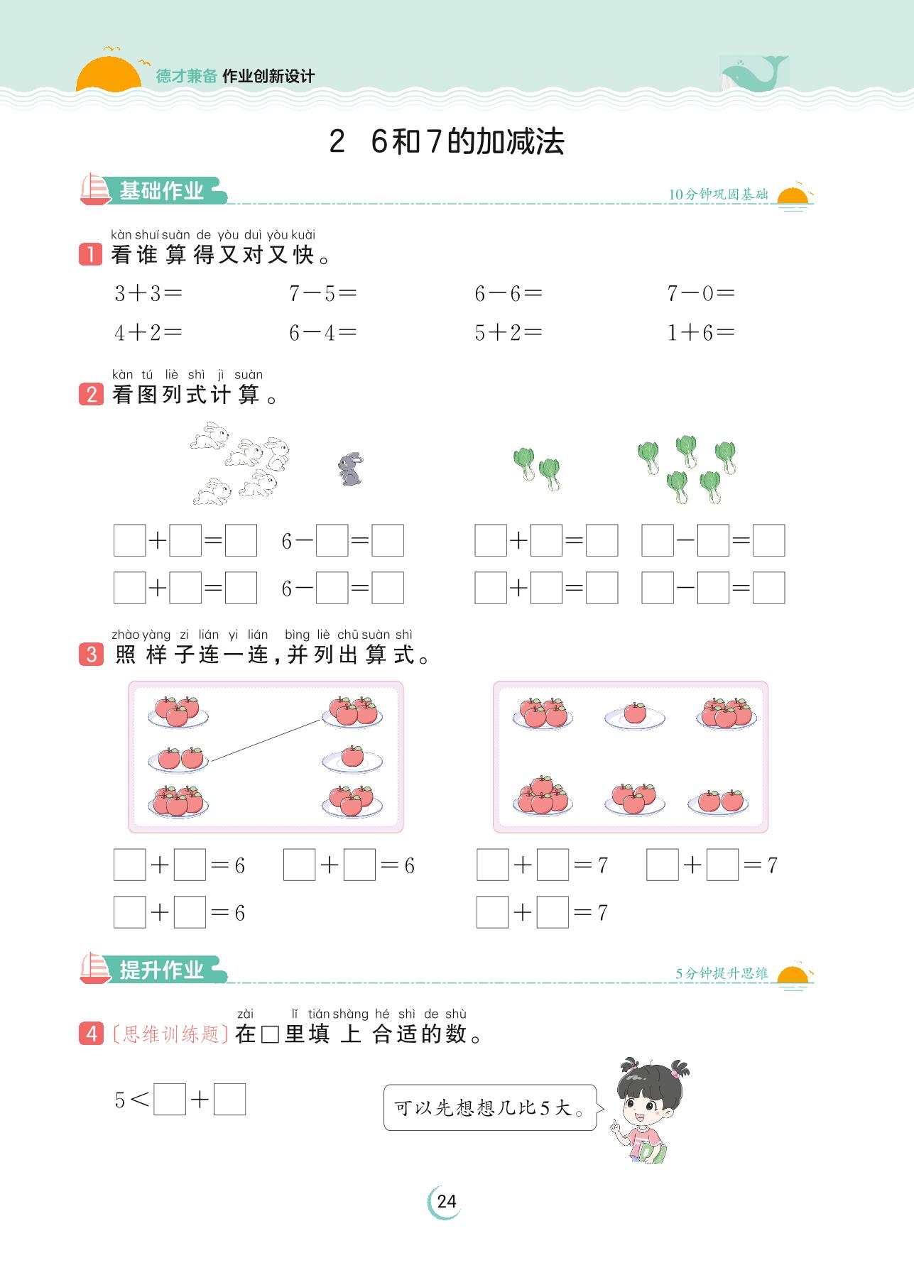 2023上册一年级数学人教版 第五单元 6~10的认识和加减法——2 6和7的加减法