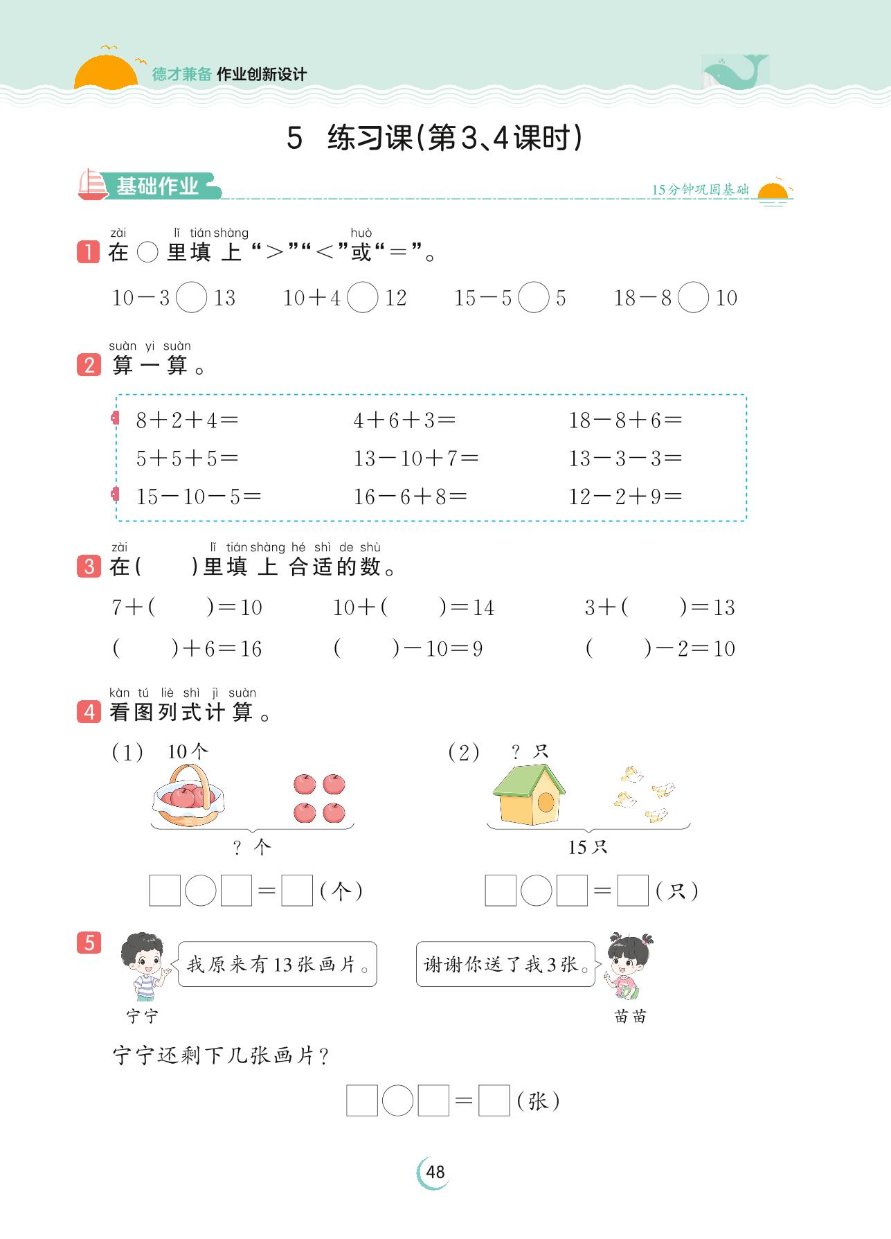 2023上册一年级数学人教版 第六单元 11~20各数的认识——5 练习课(第3、4课时)