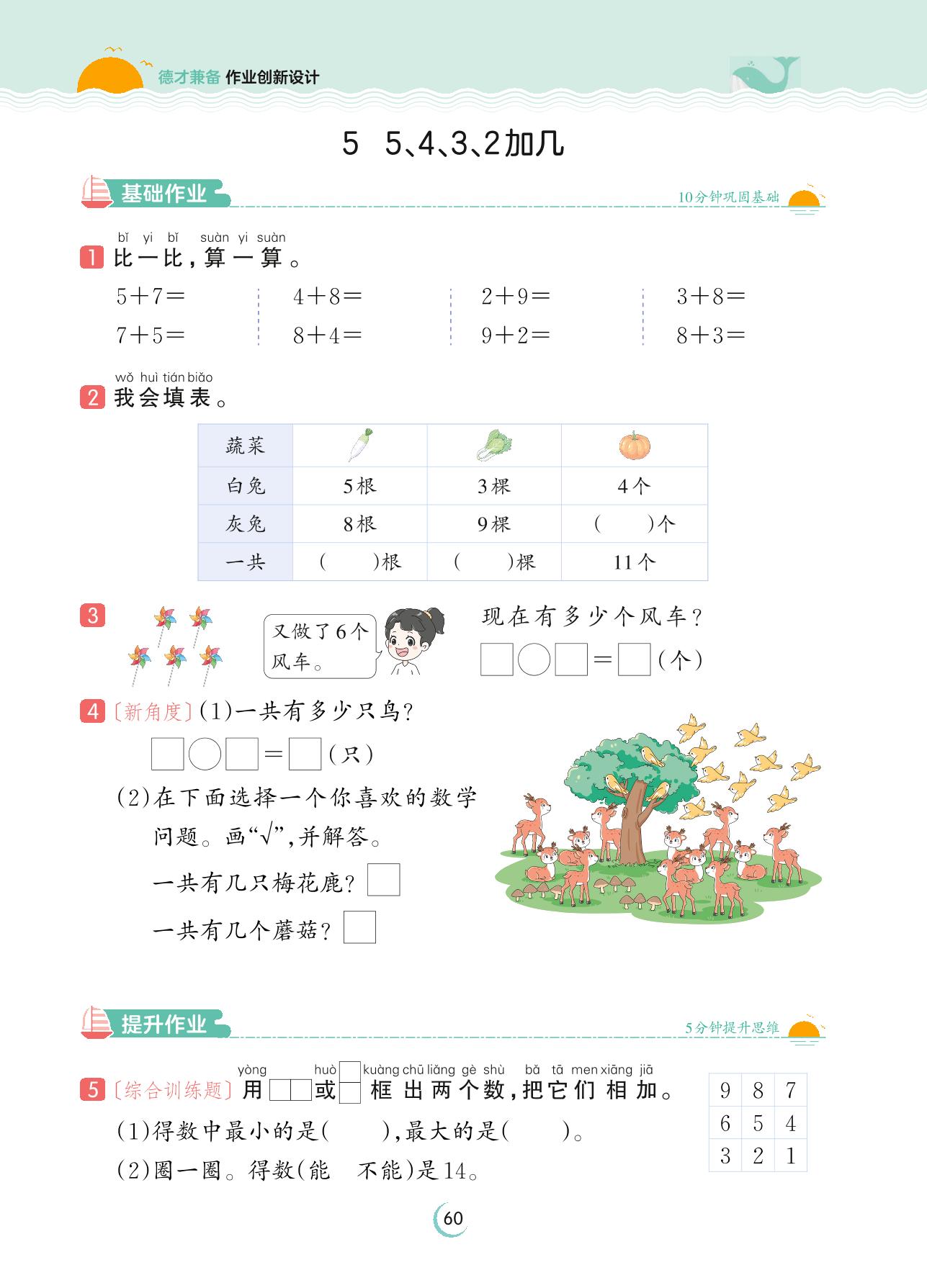 2023上册一年级数学人教版 第八单元 20以内的进位加法——5 5、4、3、2加几