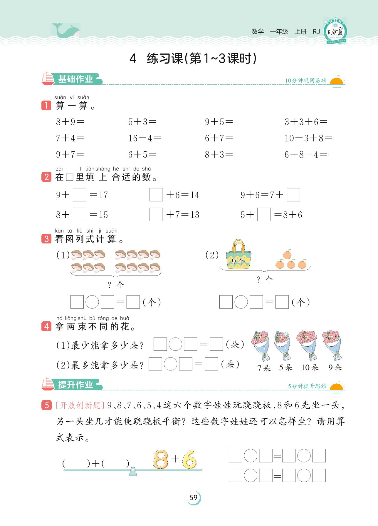 2023上册一年级数学人教版 第八单元 20以内的进位加法——4 练习课(第1~3课时)
