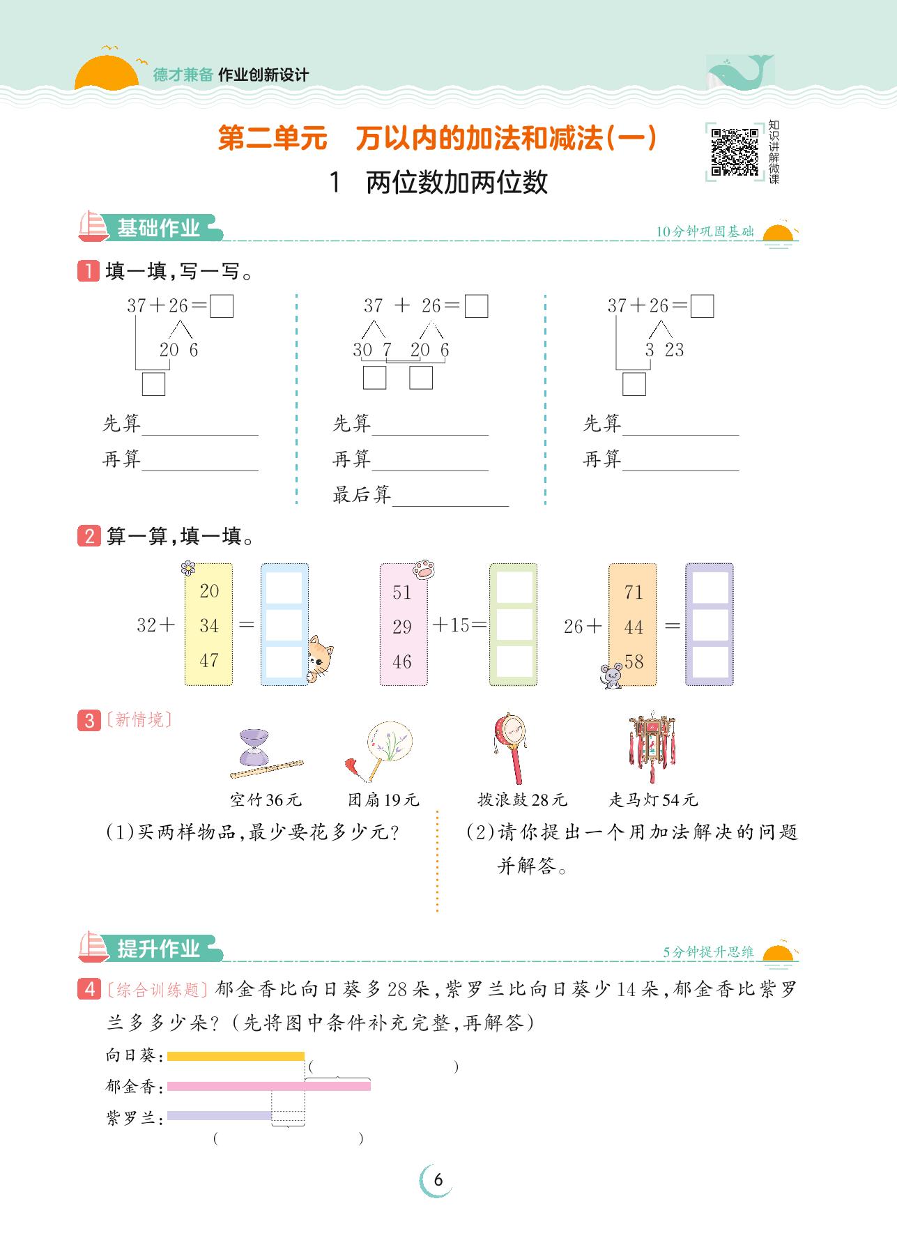 2023上册三年级数学人教版 第二单元 万以内的加法和减法(一)——1 两位数加两位数